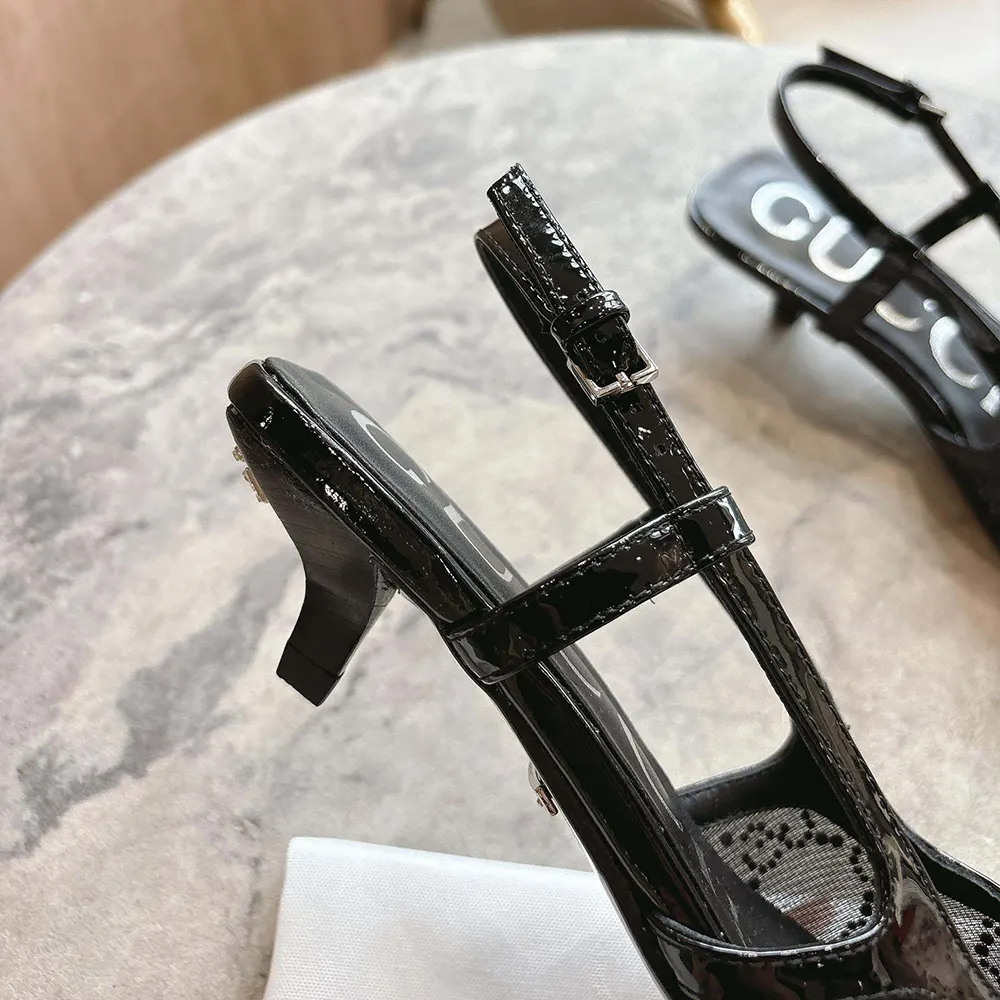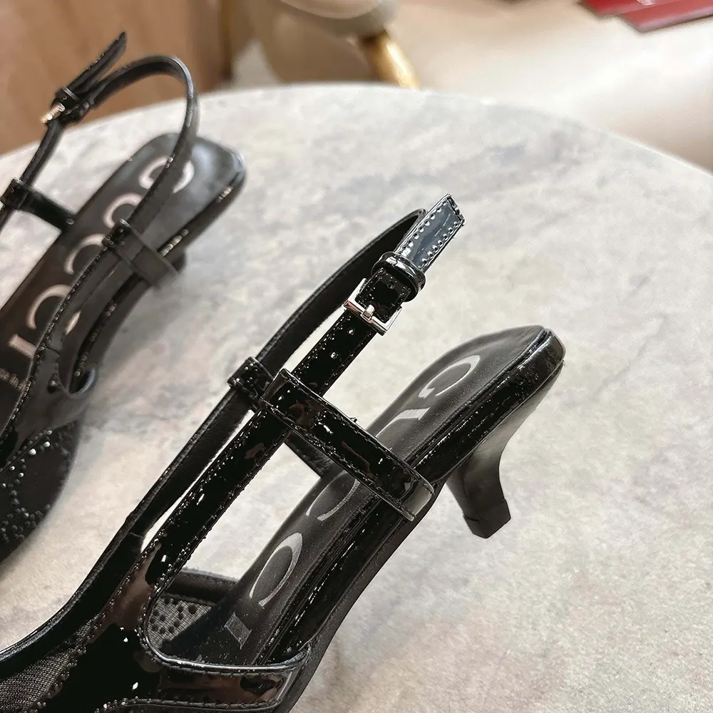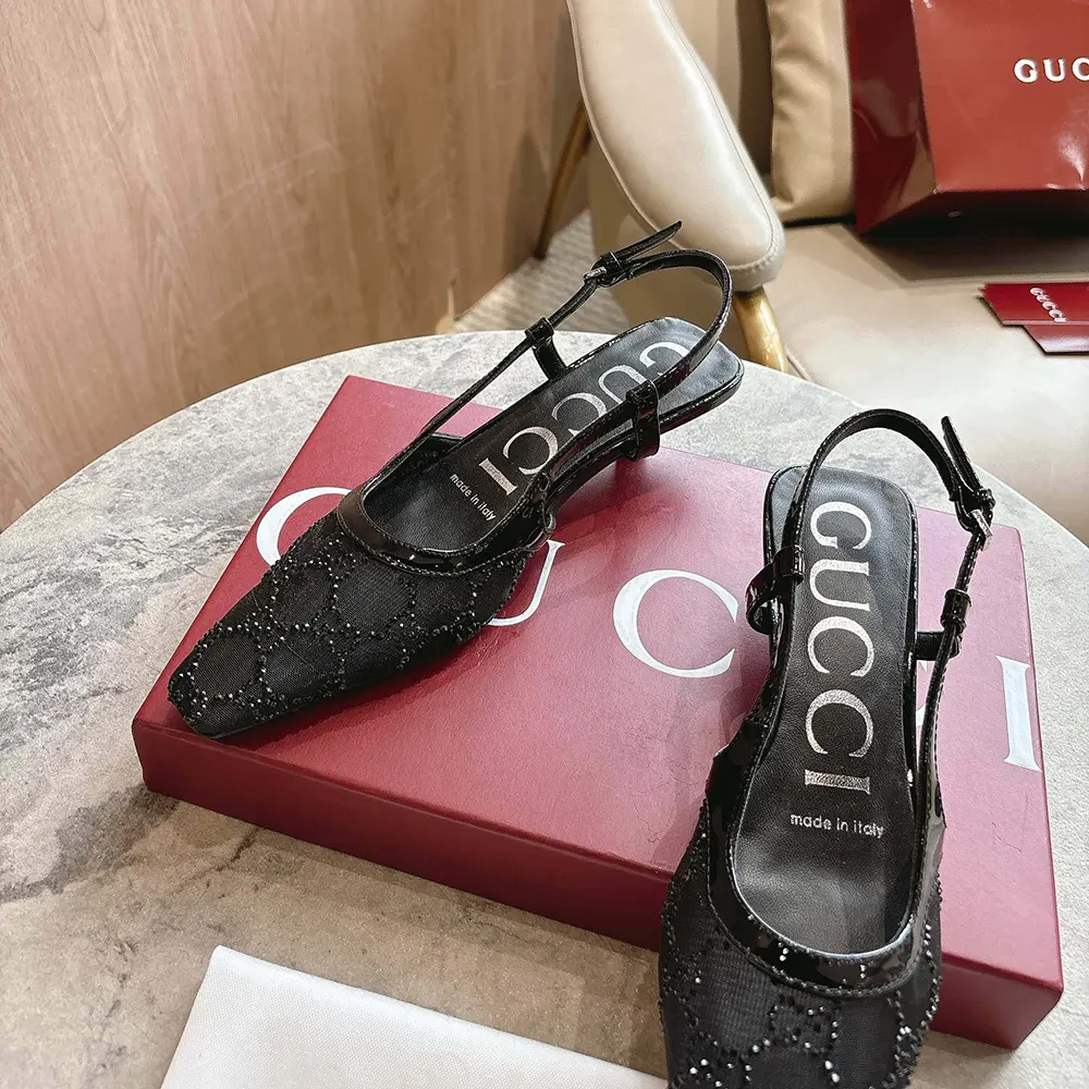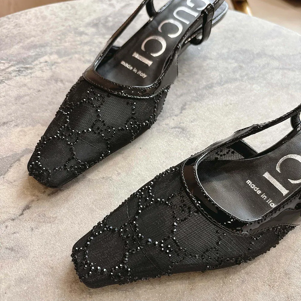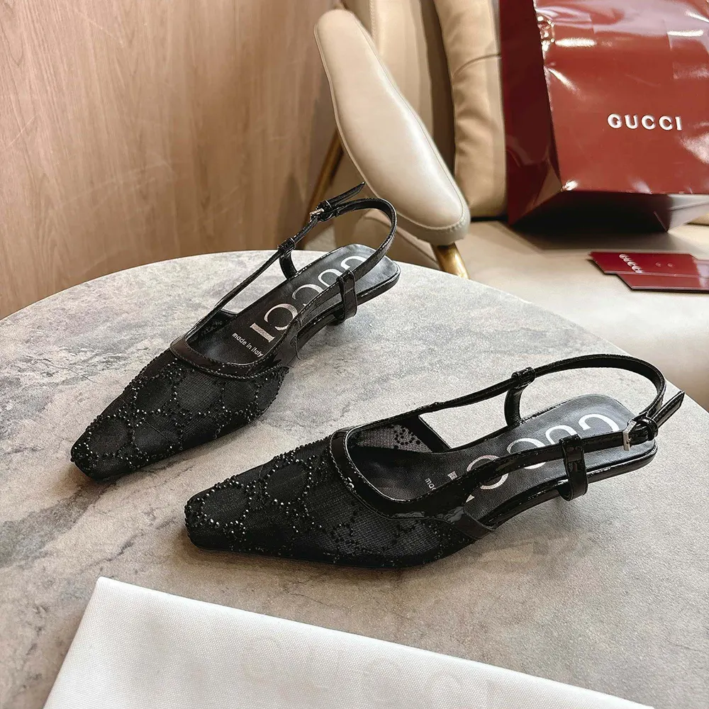 - This pair of slingback shoes are presented in black mesh with a sparkling GG motif,