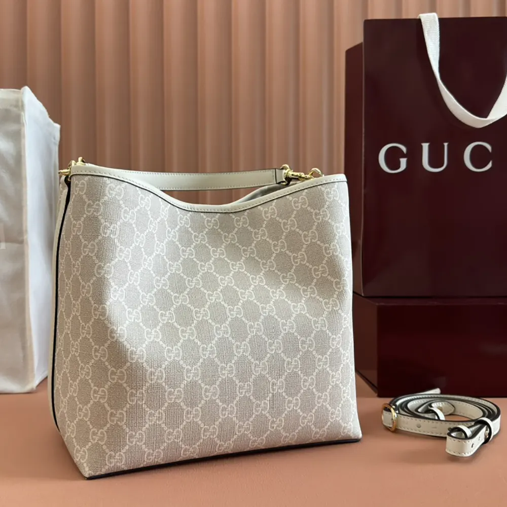 Gucci Women GG Emblem Mini Bucket Bag-White 815118FAD6L9641