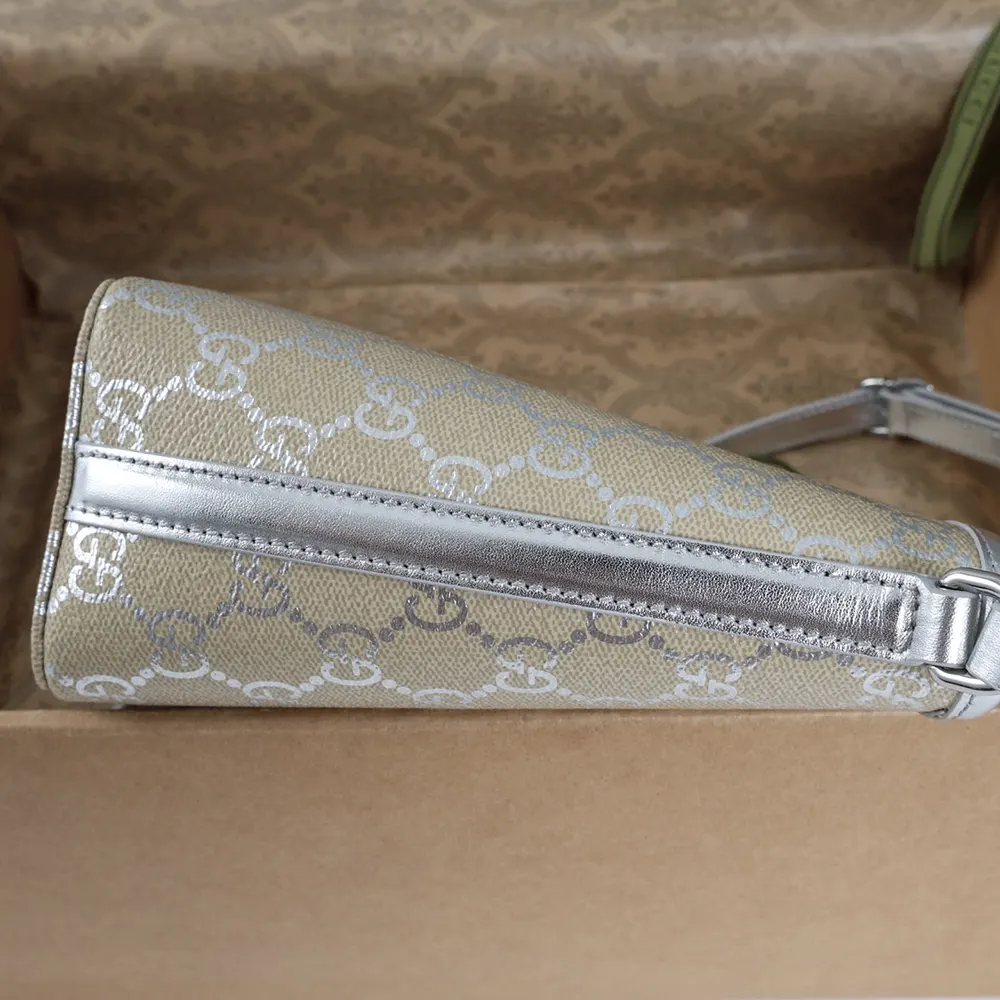 • introducing metallic styles which impart new light on the signature GG motif, complete with metallic leather trim.