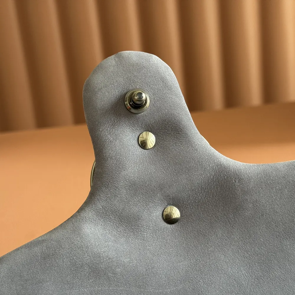 • A sleek back pocket introduces a functional touch to the medium and large sizes.