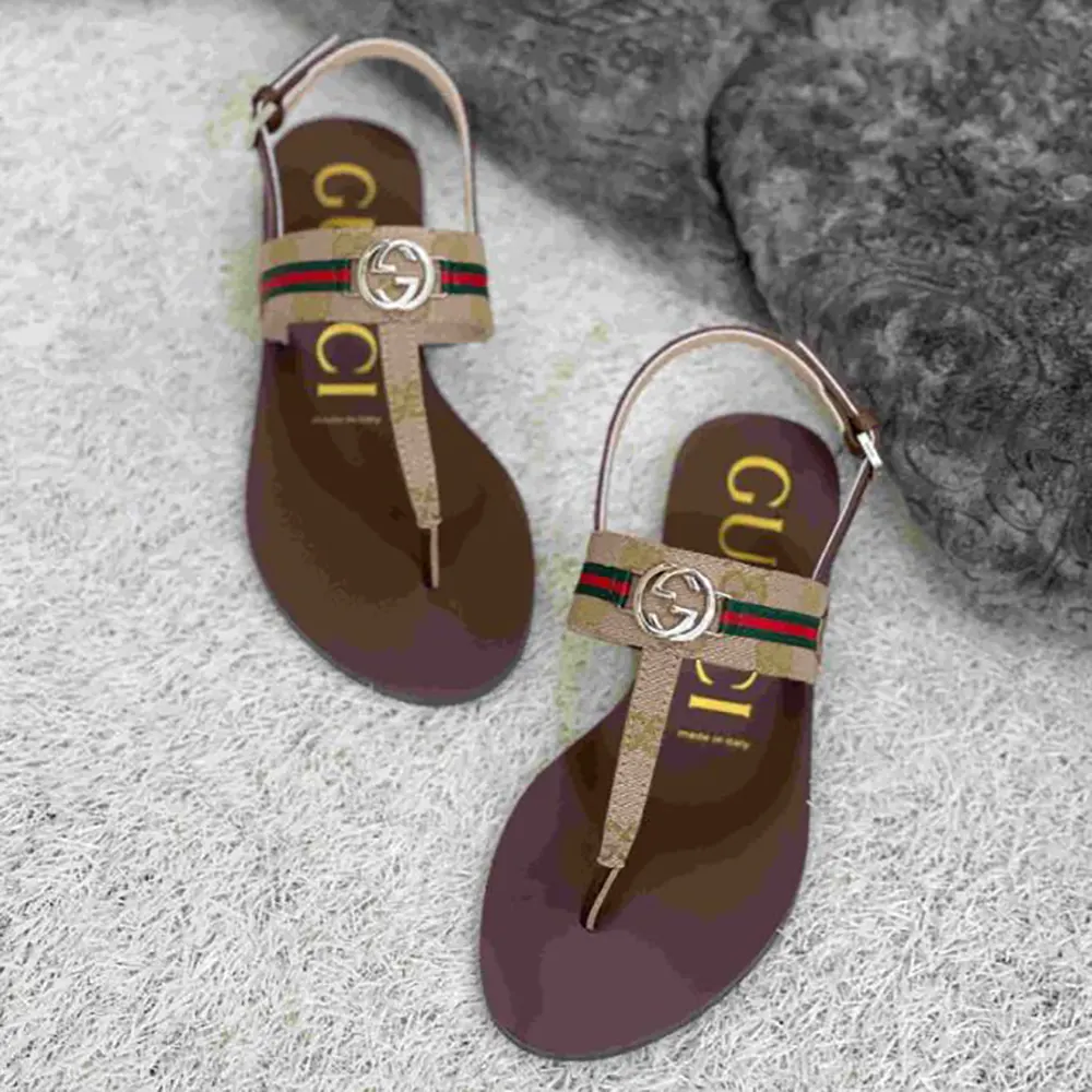 - These streamlined sandals are presented in beige and ebony Original GG canvas and reveal a central Interlocking G Web detail