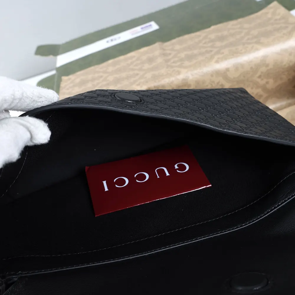 • Black embossed GG grainy leather