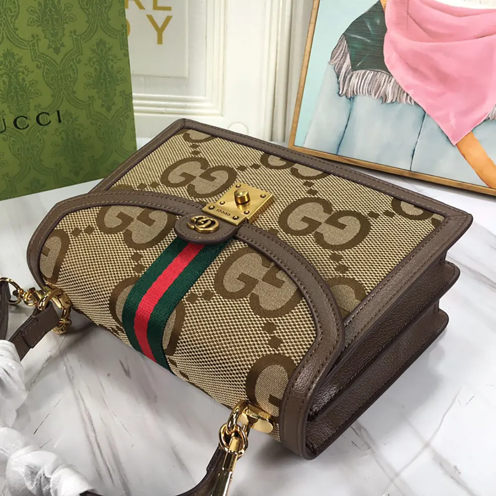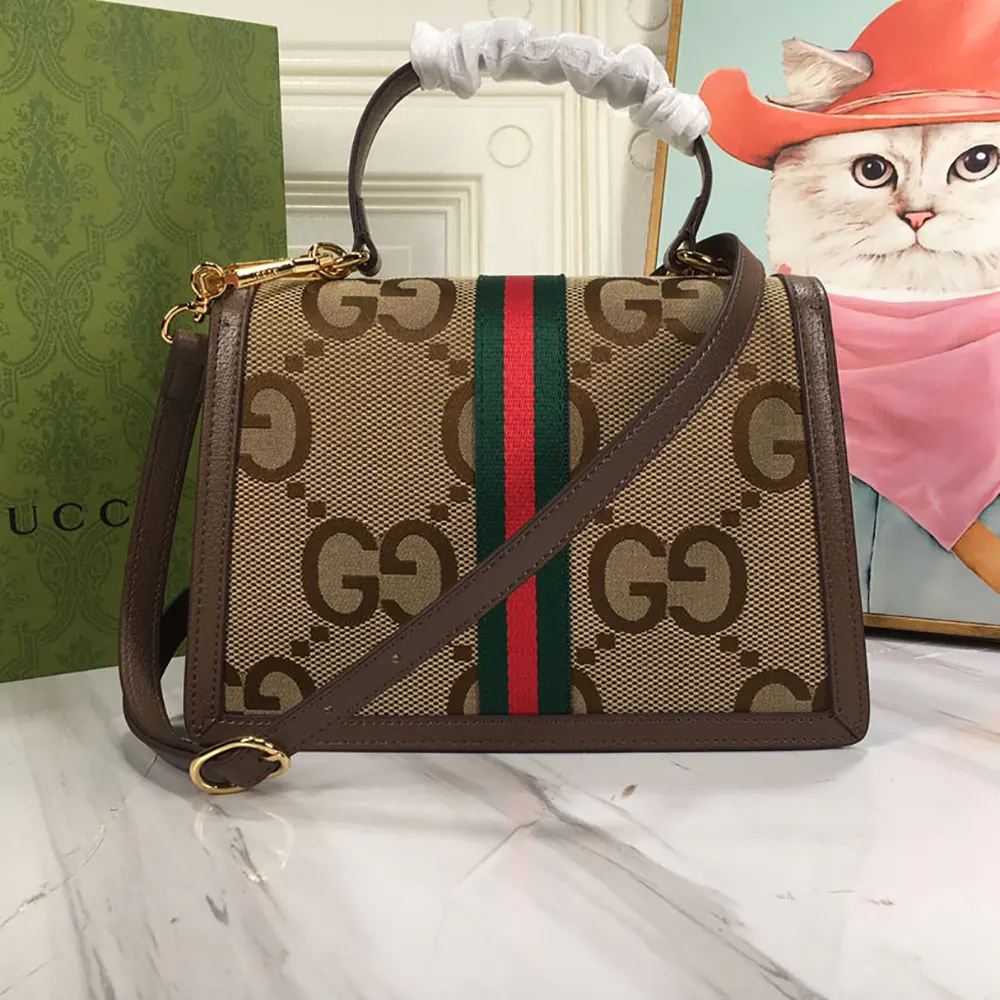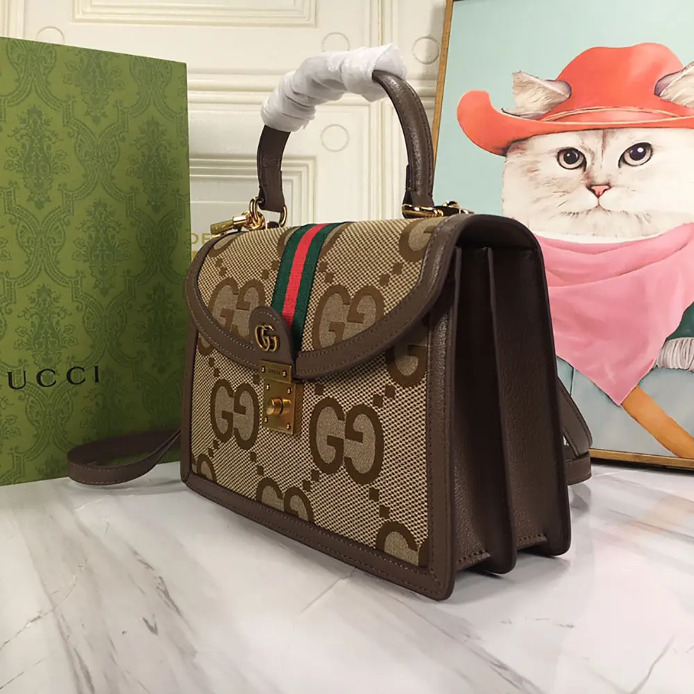 Gucci Women Ophidia Medium Top Handle Bag-Brown