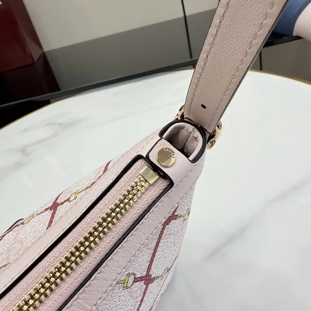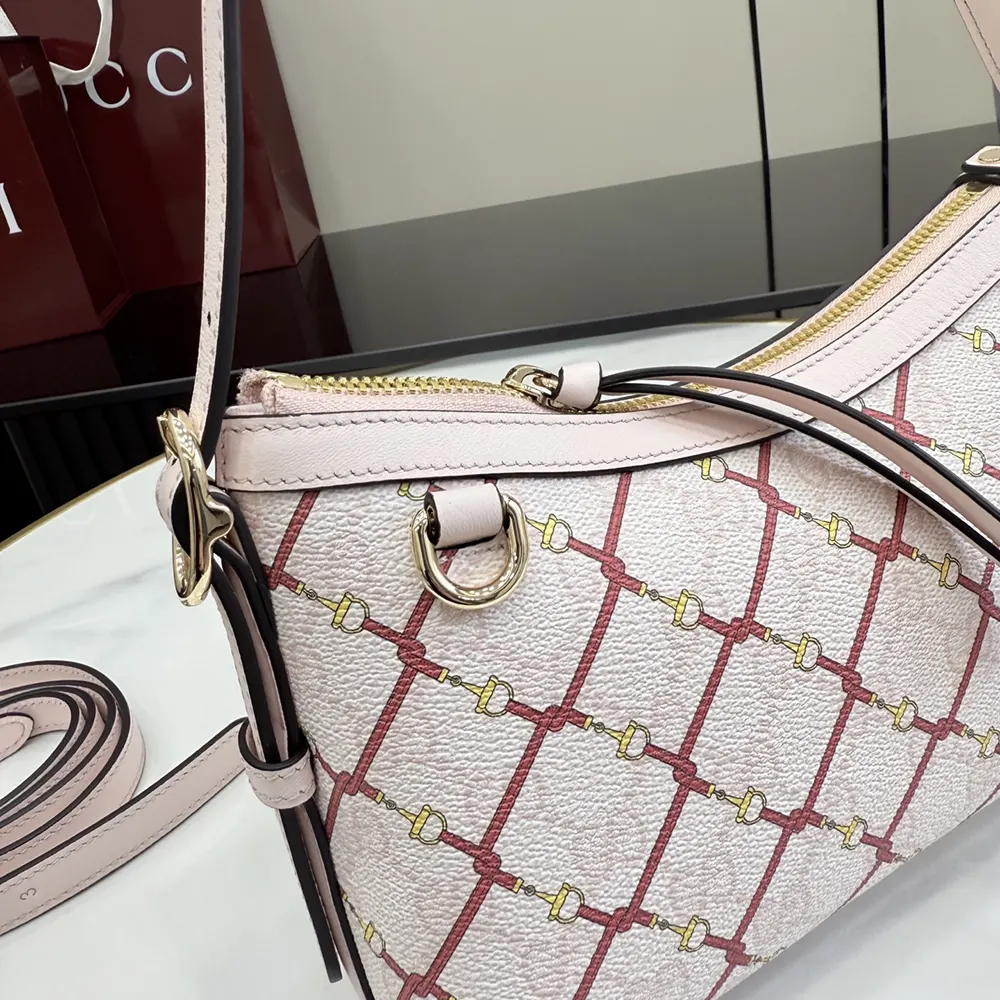 - Crafted from a laminated-effect GG Monogram coated fabric, this small shoulder bag comes with an additional D-ring for detachable items.
