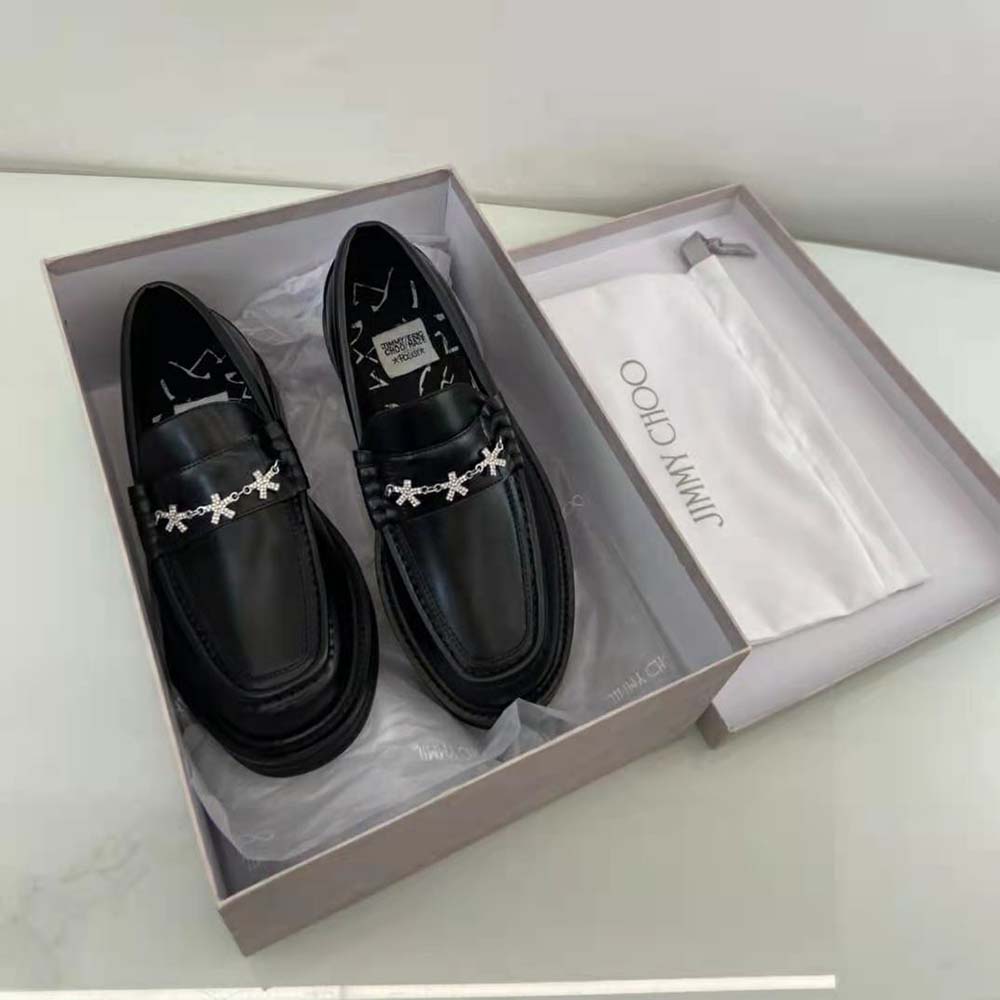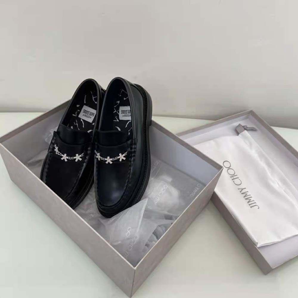 Specification: Jimmy Choo Men Jc Eric Haze Ezra M Black Box Calf Loafers with Eric Haze Star Chain