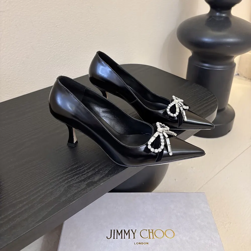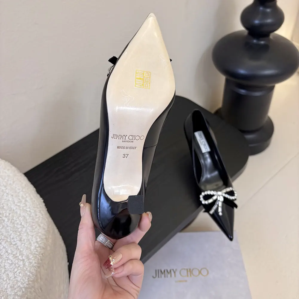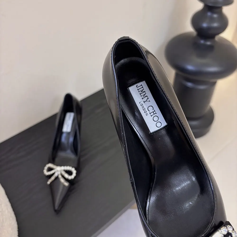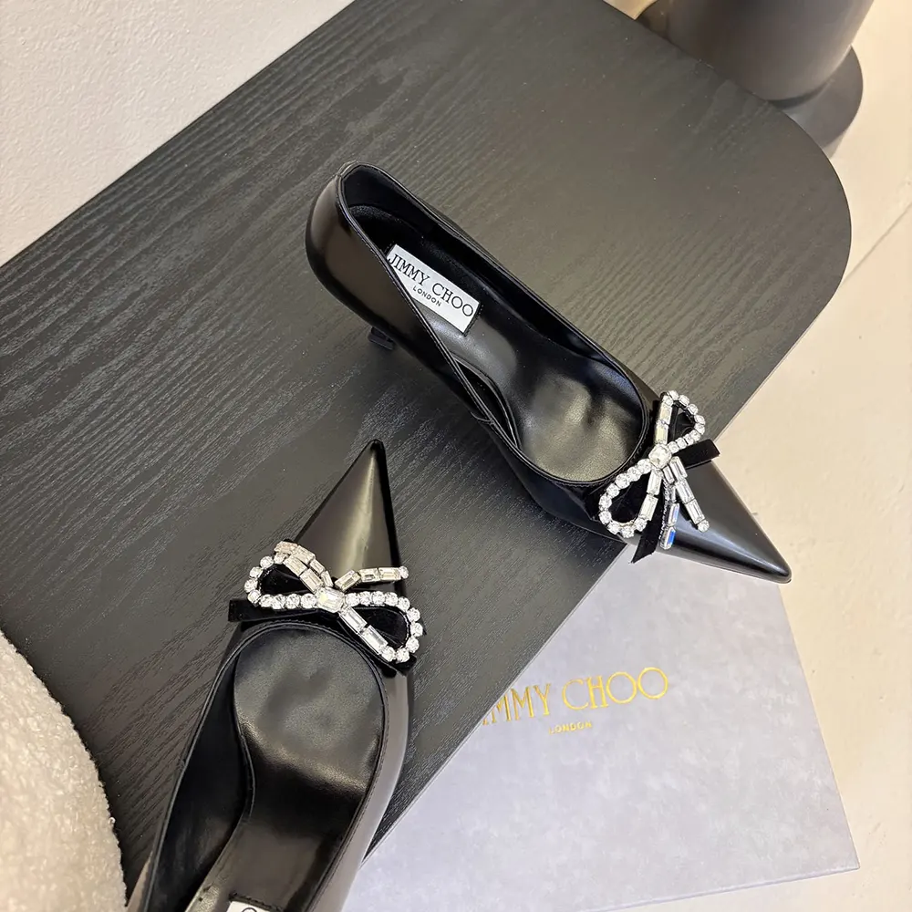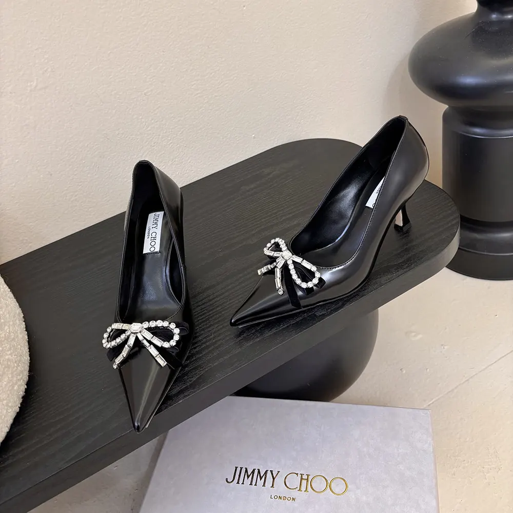 Specification: Jimmy Choo Women Auria 70mm Black Soft Spazzolato Pumps with Velvet and Crystal Bow
