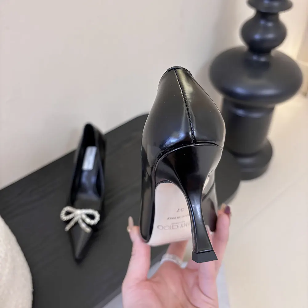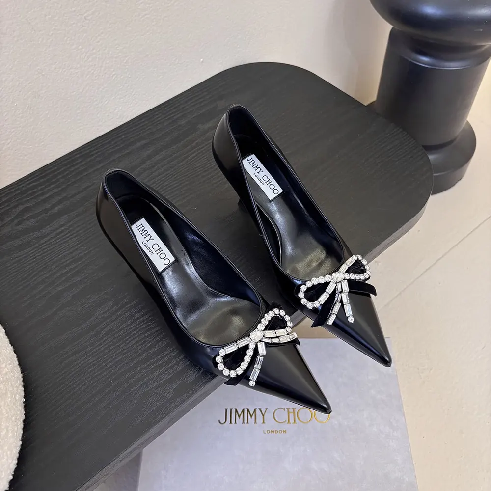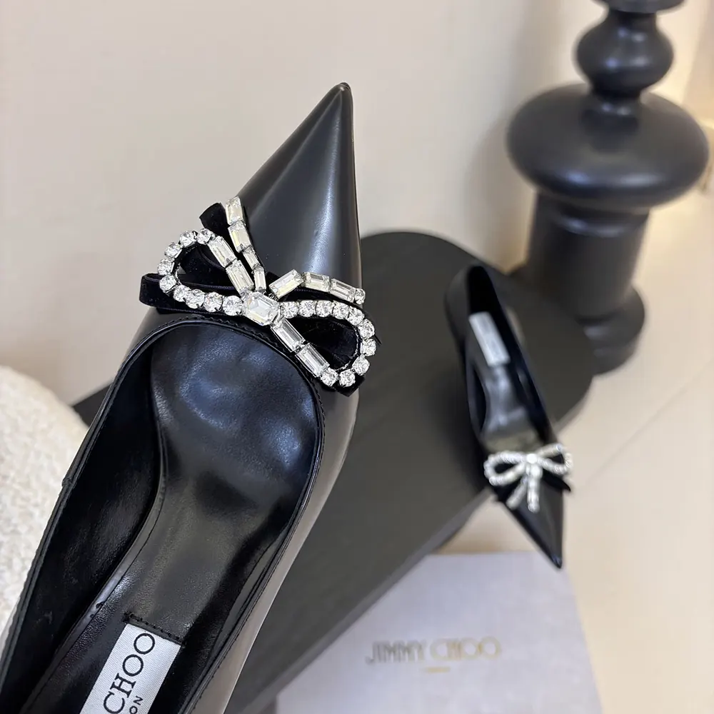 Jimmy Choo Women Auria 70mm Black Soft Spazzolato Pumps with Velvet and Crystal Bow