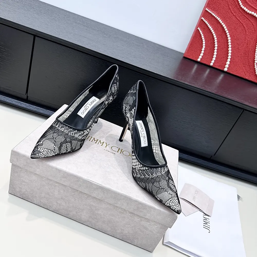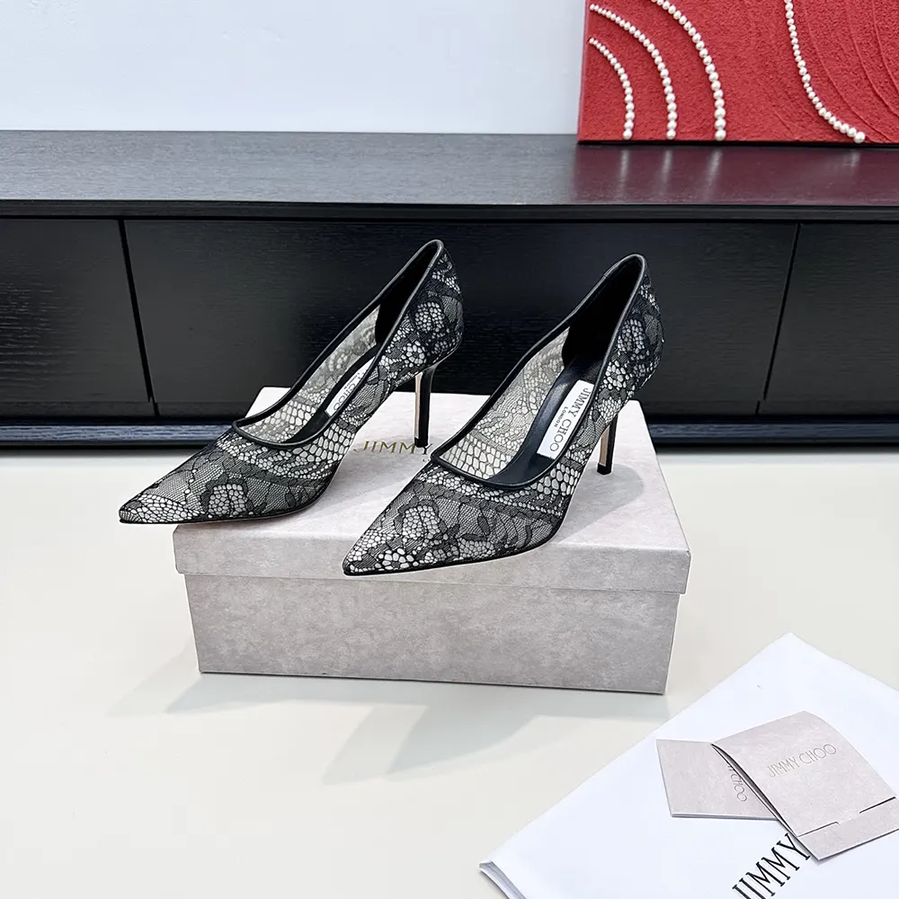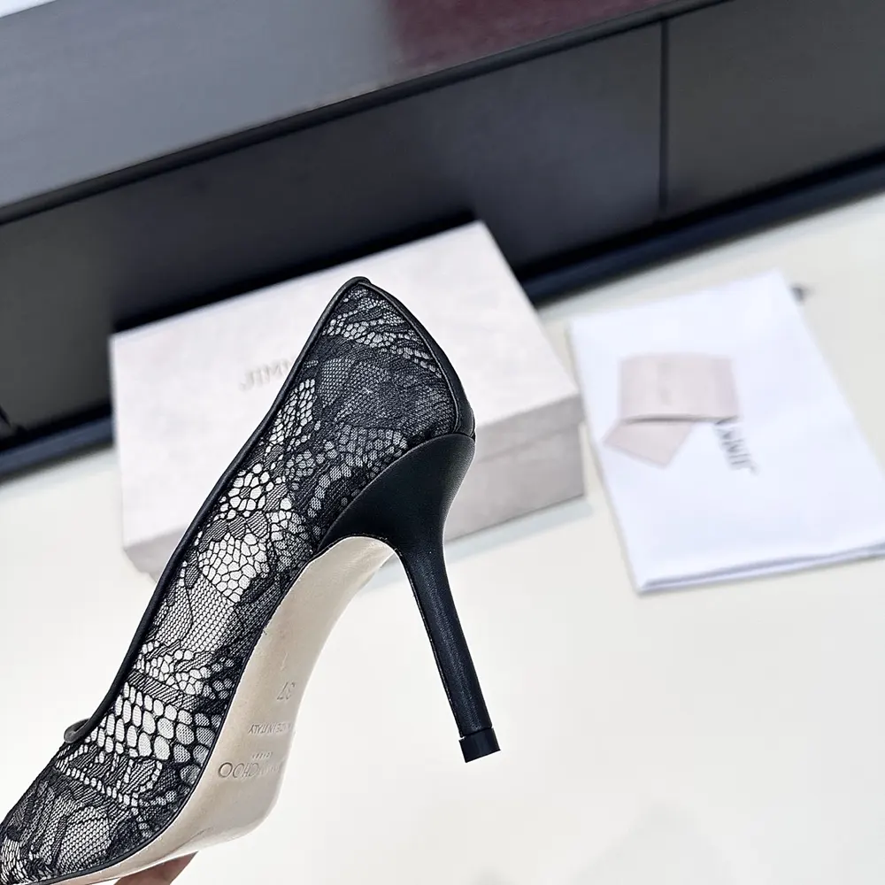 • The intricate Jimmy Choo lace upper complements a classic silhouette, set on a slim stiletto heel.