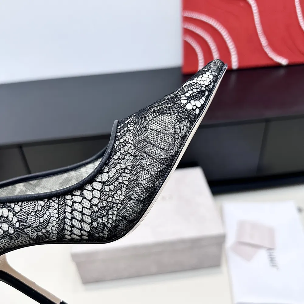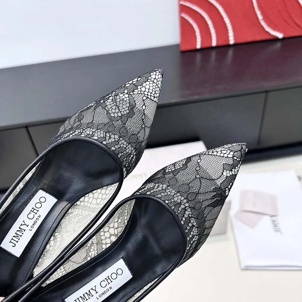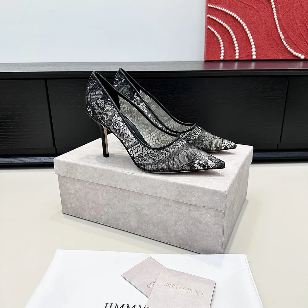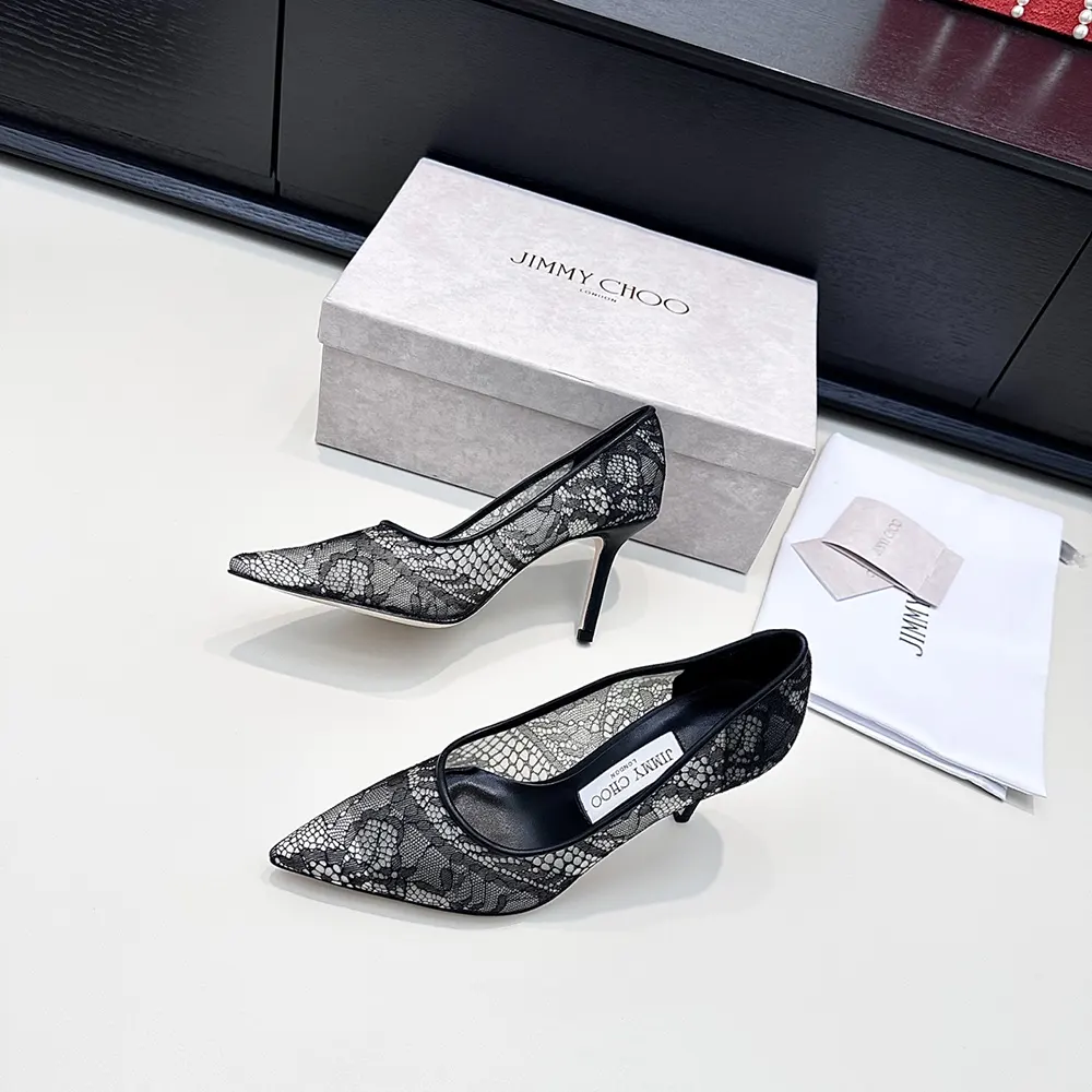 • The intricate Jimmy Choo lace upper complements a classic silhouette, set on a slim stiletto heel.