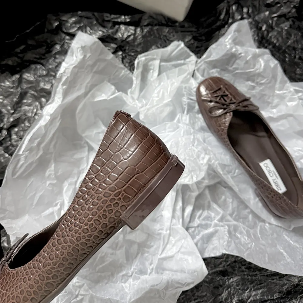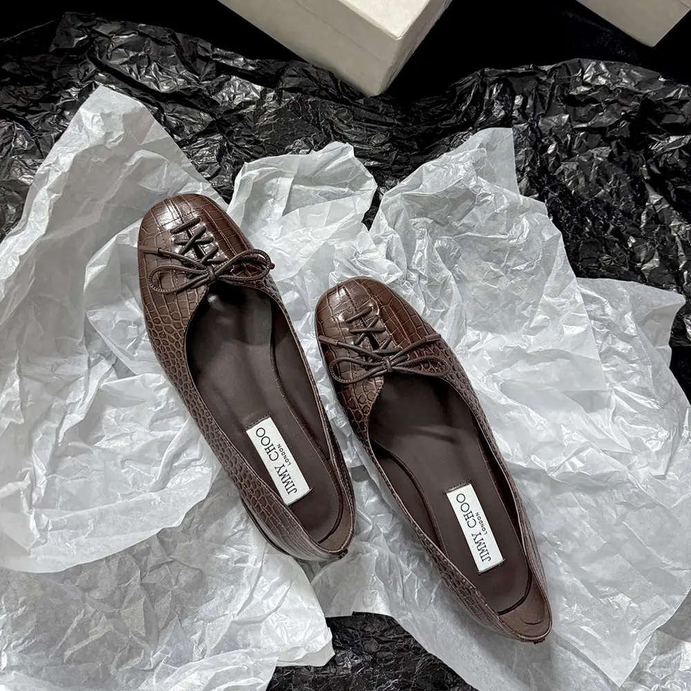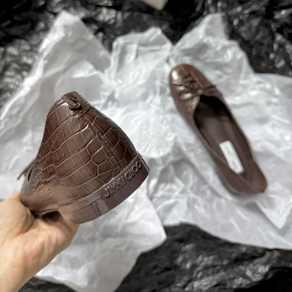 Specification: Jimmy Choo Women Scarlett Ballerina Chocolate Croc Embossed Leather Ballerina Flats