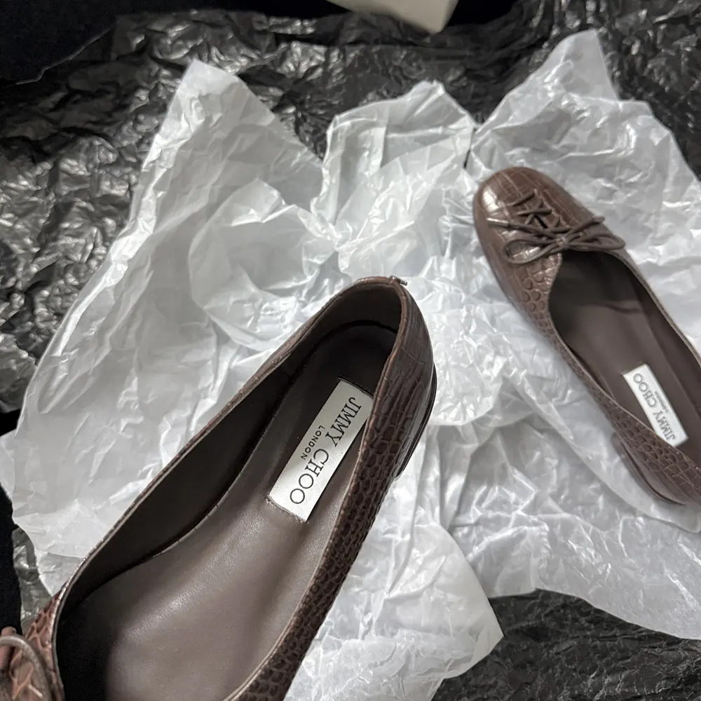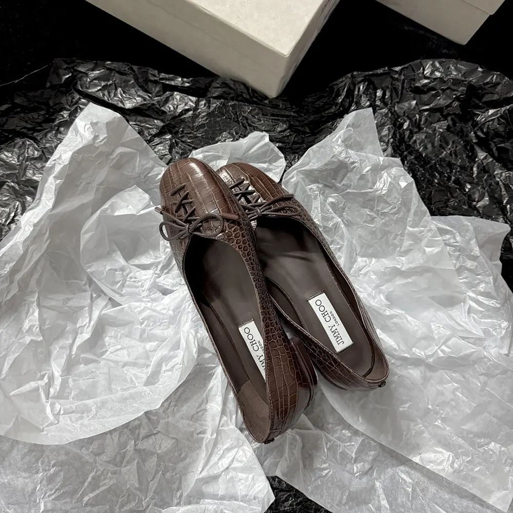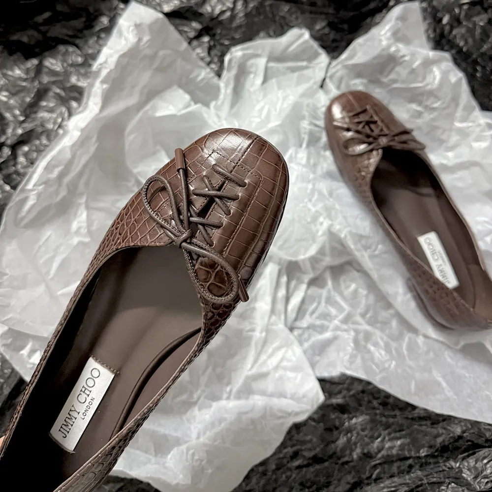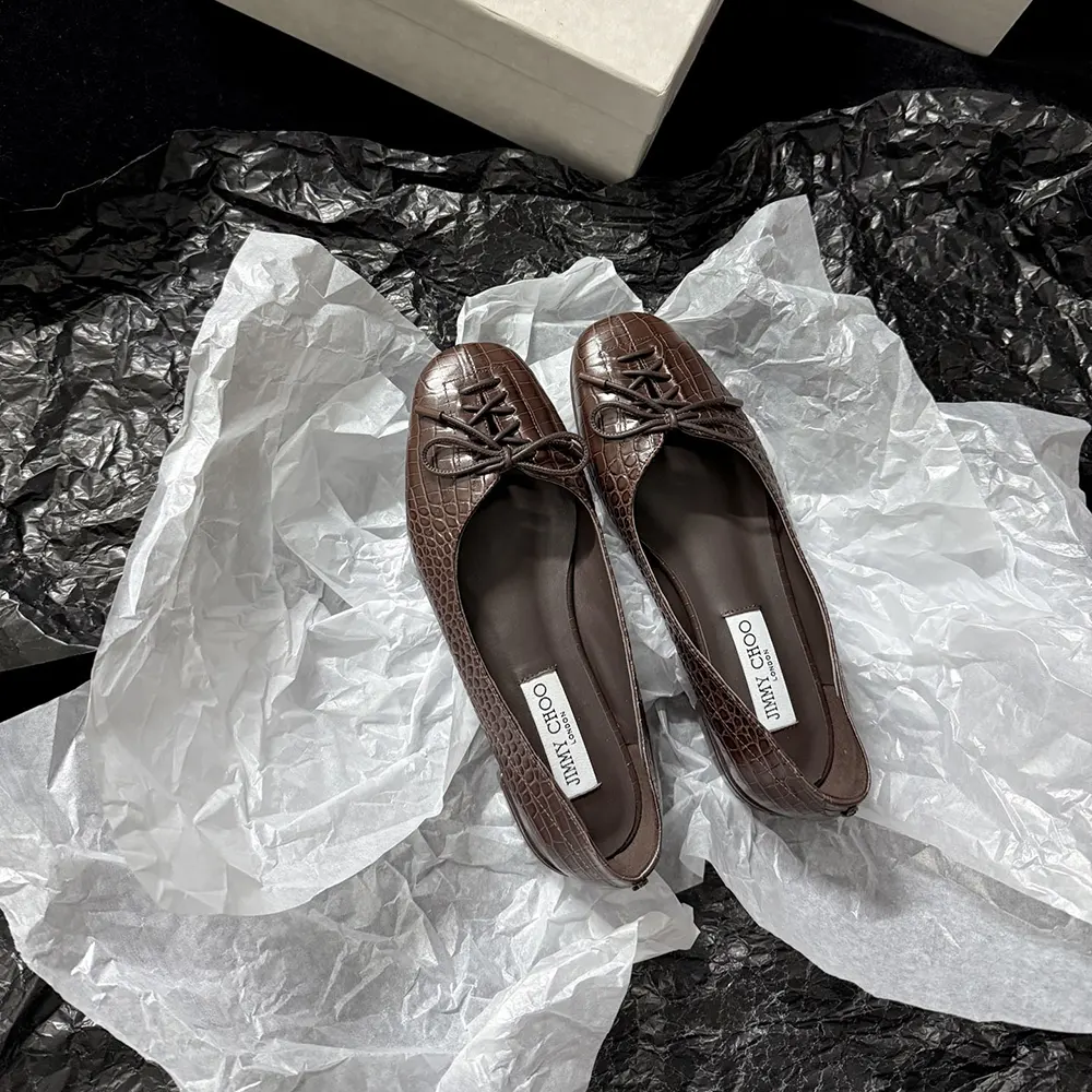 Specification: Jimmy Choo Women Scarlett Ballerina Chocolate Croc Embossed Leather Ballerina Flats