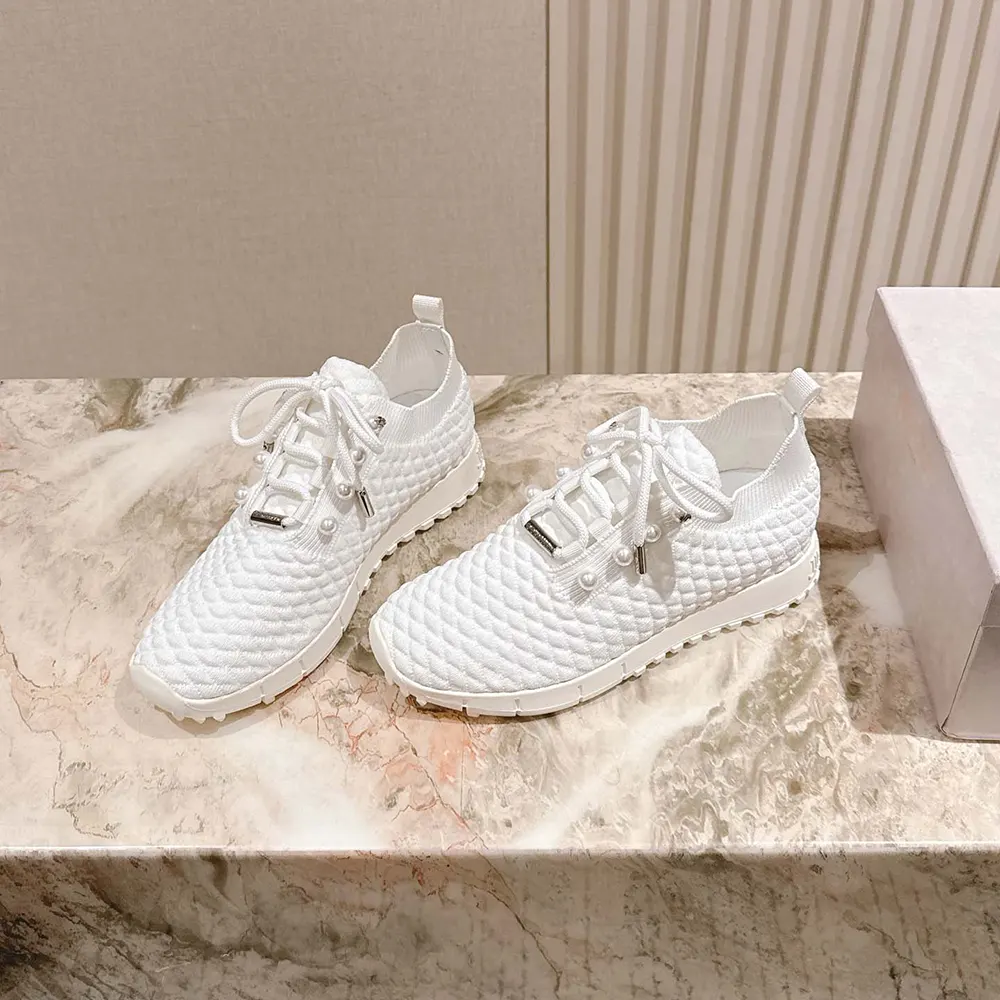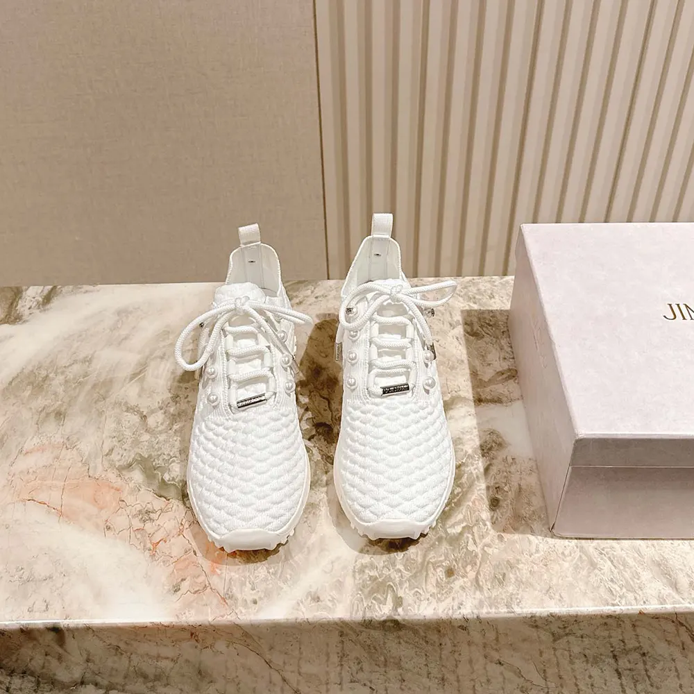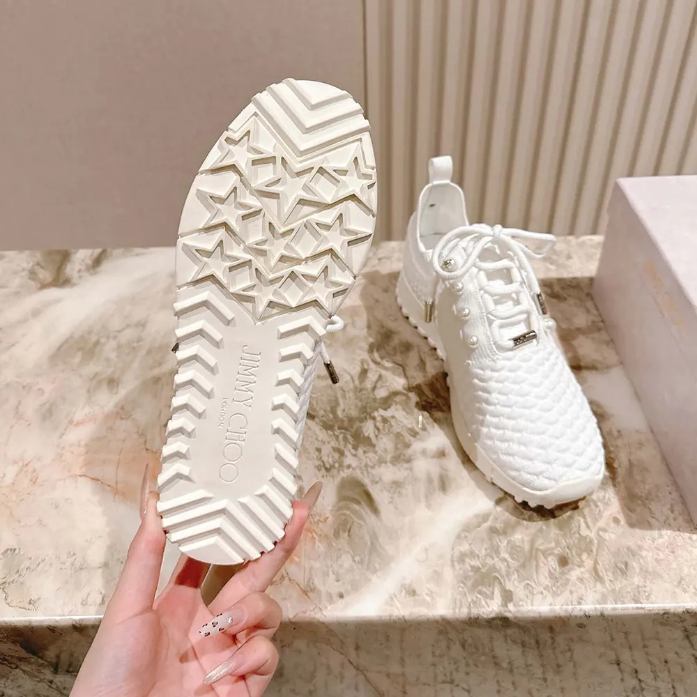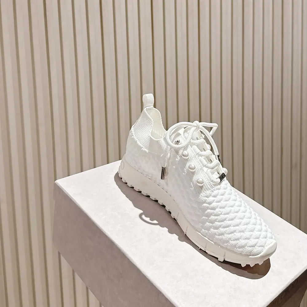 Specification: Jimmy Choo Women Veles White Textured Knit Trainers VELESITB