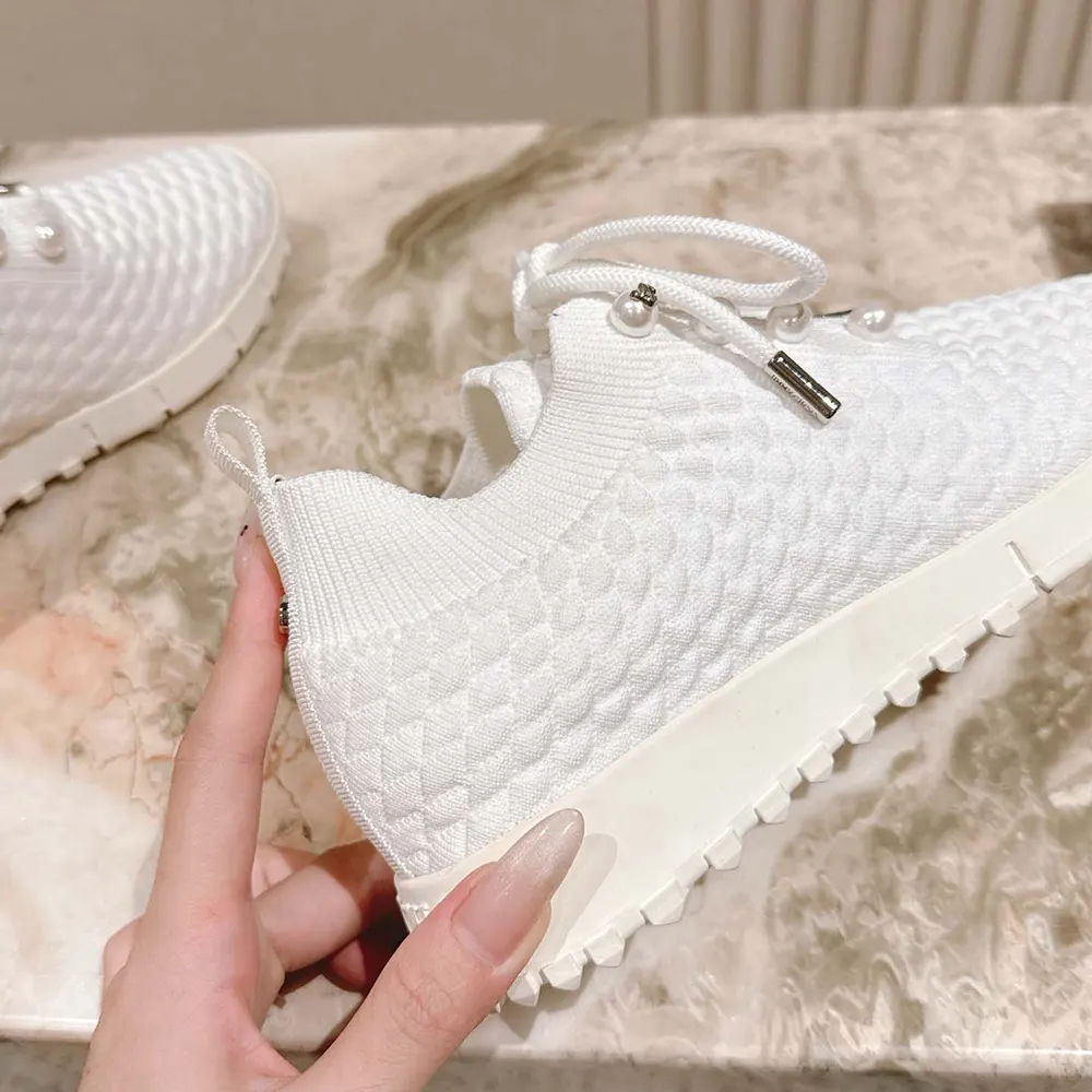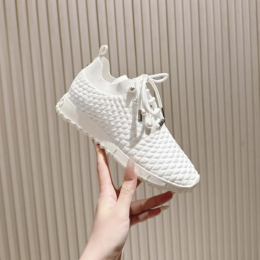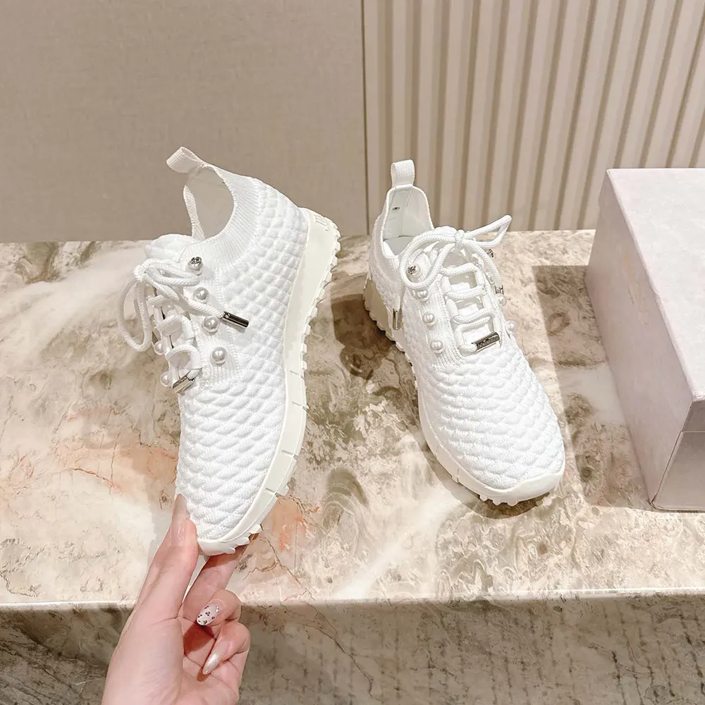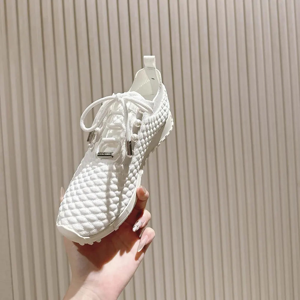 Specification: Jimmy Choo Women Veles White Textured Knit Trainers VELESITB