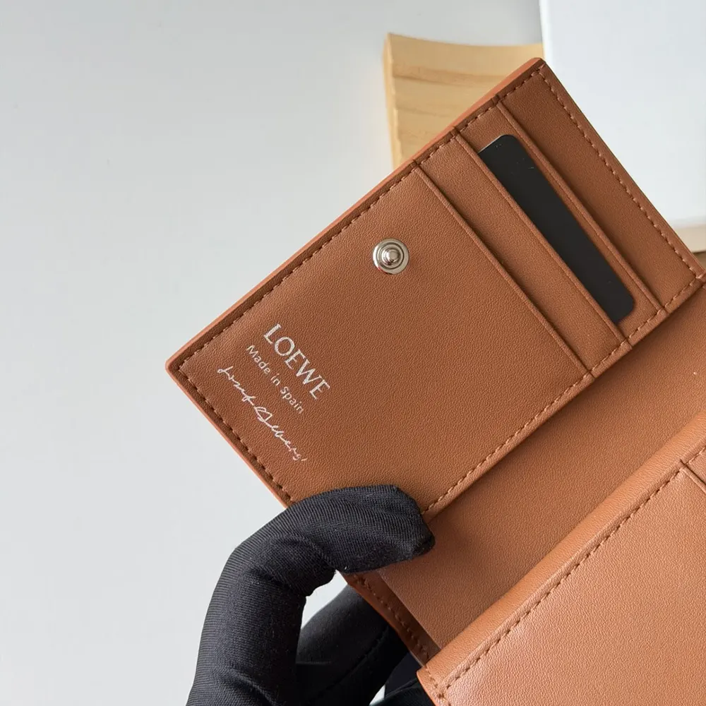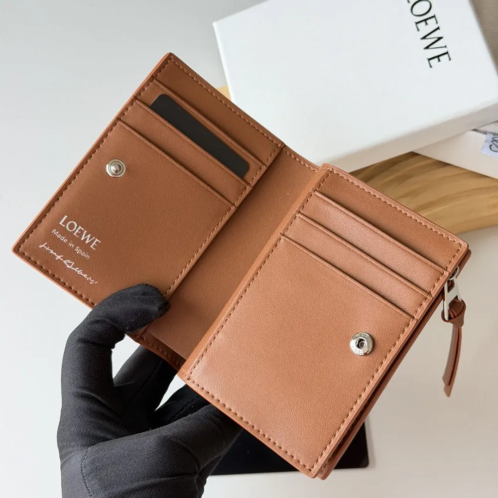 Loewe Unisex Compact Wallet in Nappa Calfskin-Brown C643Z40XA7