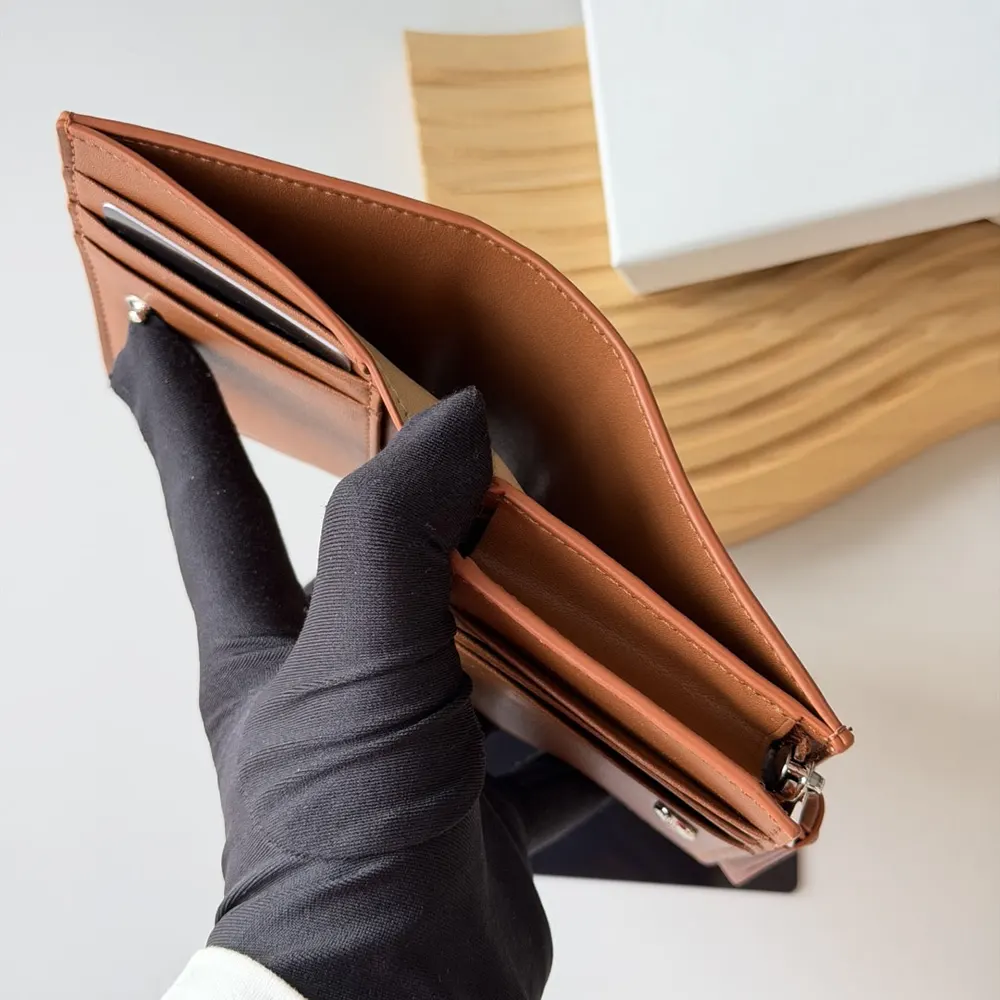 - One zipped coin compartment with knot calfskin pull