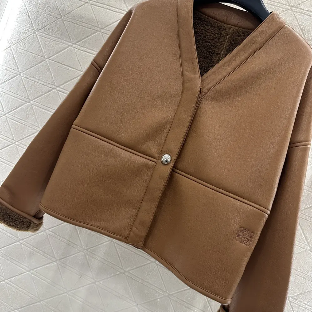 Specification: Loewe Women Pebble Cardigan in Shearling-Brown S359Y2SL49
