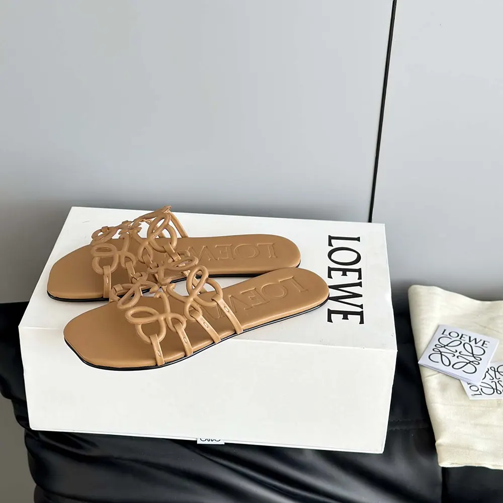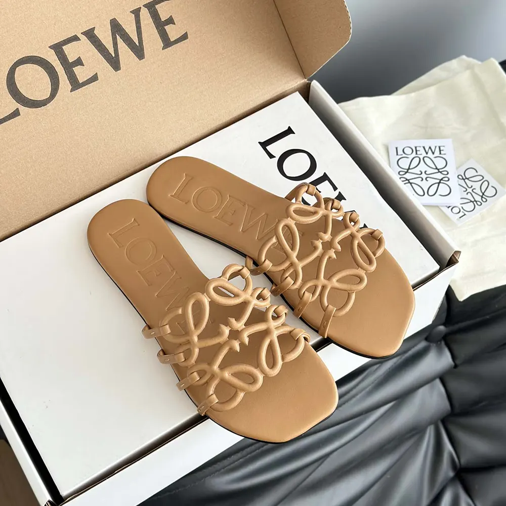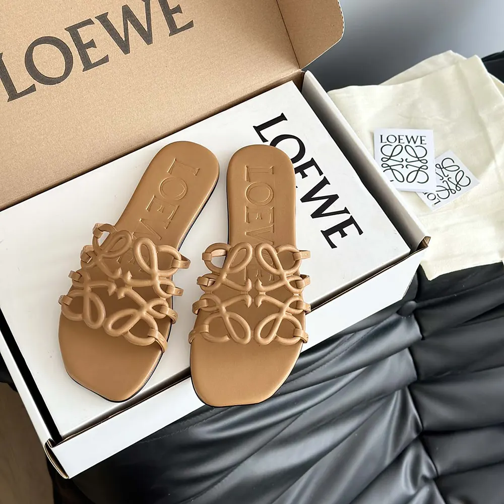 Specification: Loewe Women Petal Anagram Slide in Soft Calfskin-Brown