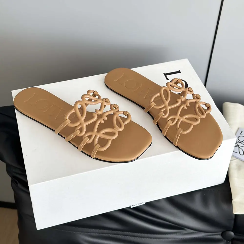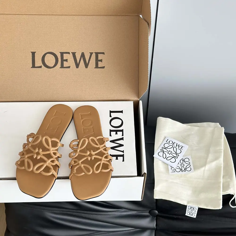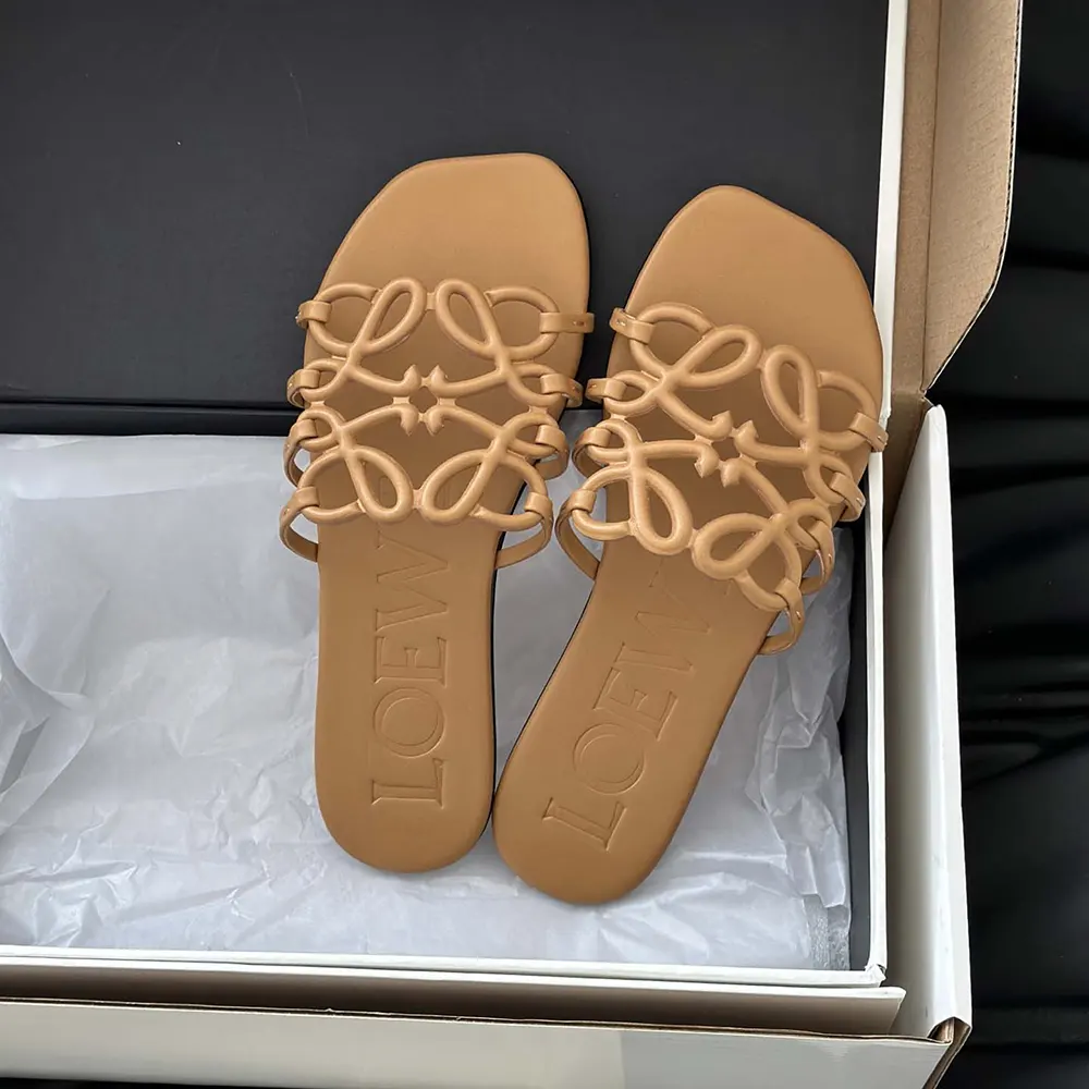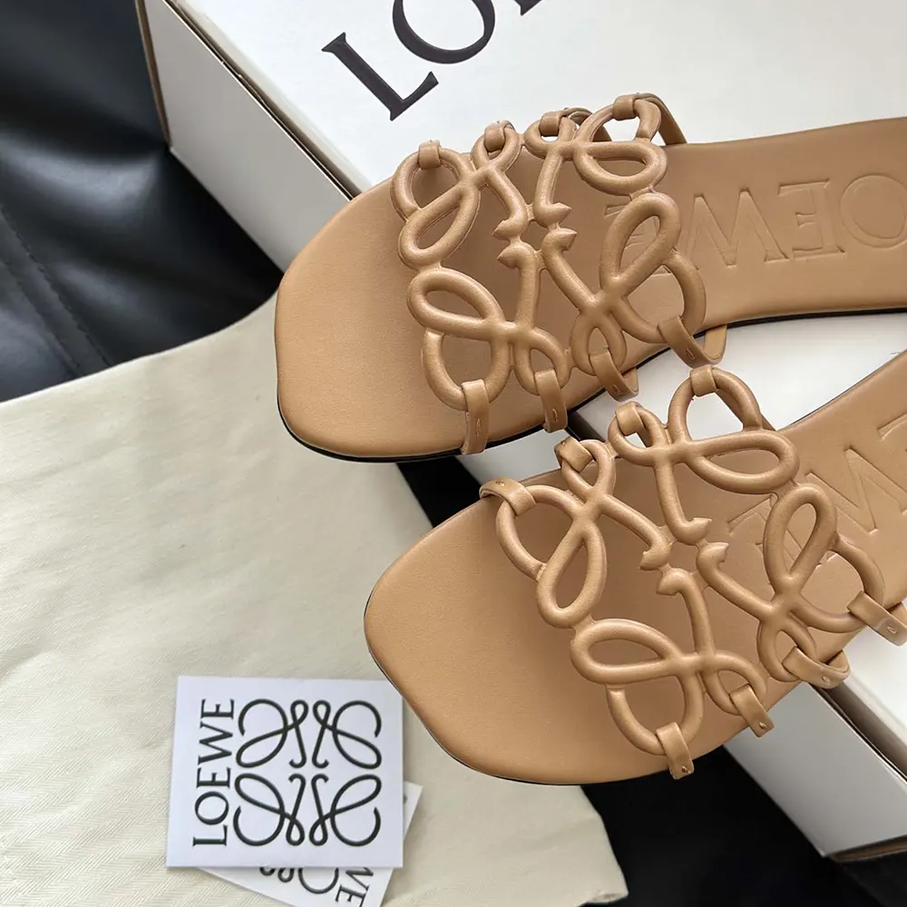 Specification: Loewe Women Petal Anagram Slide in Soft Calfskin-Brown
