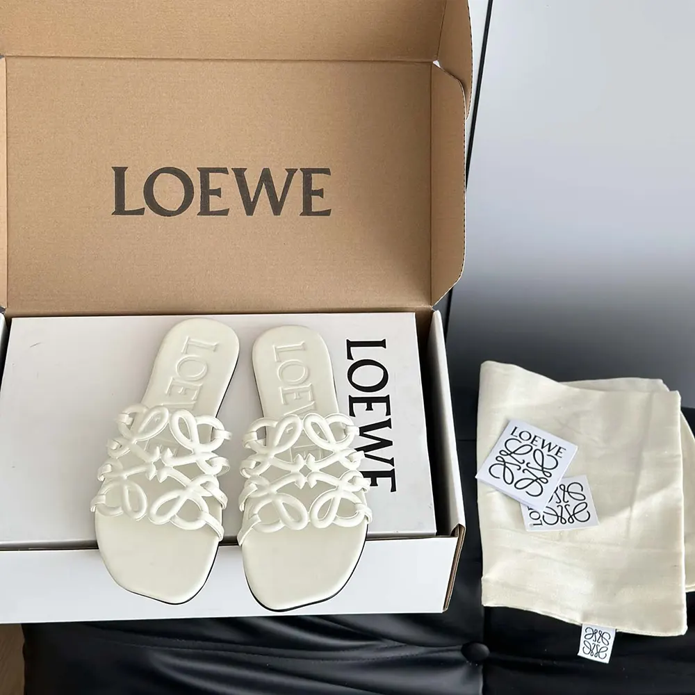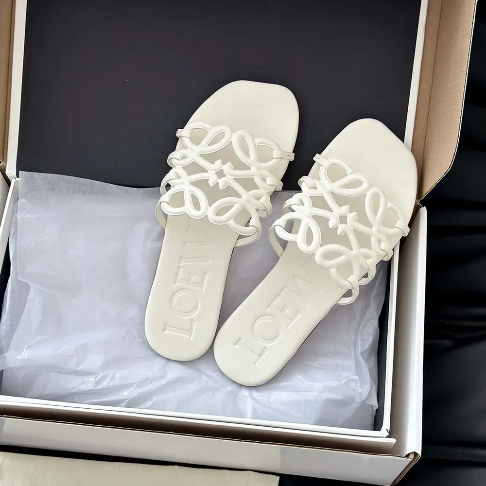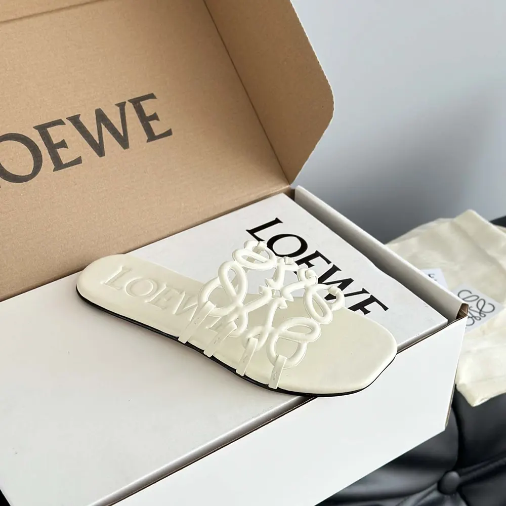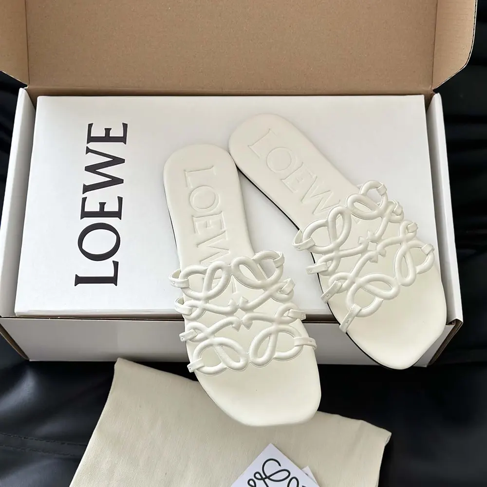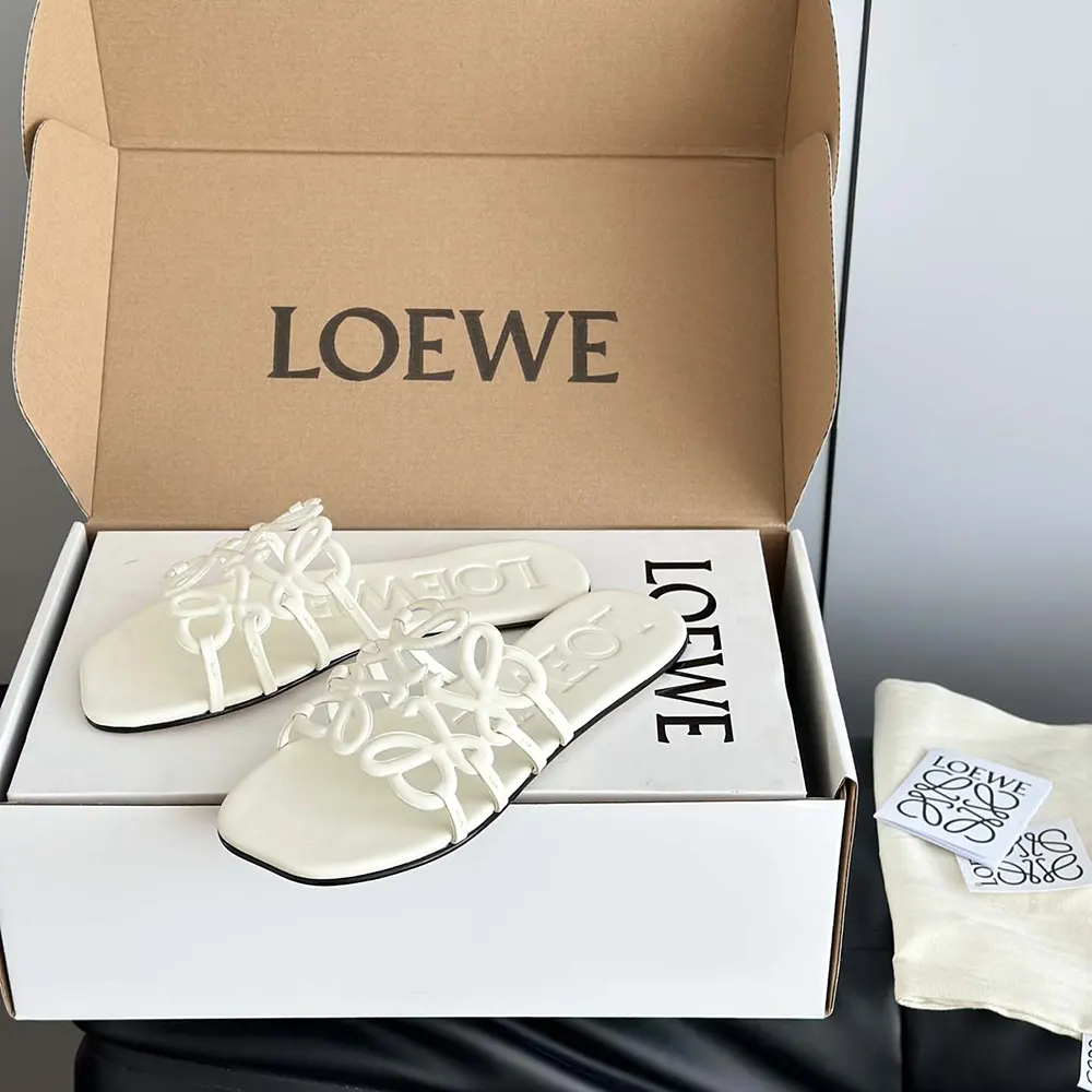 Specification: Loewe Women Petal Anagram Slide in Soft Calfskin-White