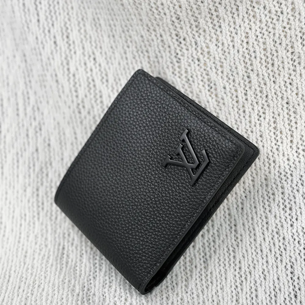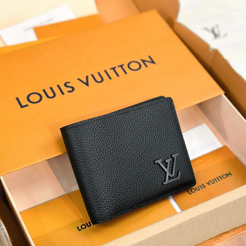 • The classic Multiple wallet takes on a new understated elegance with this LV Aerogram version in black calf leather,