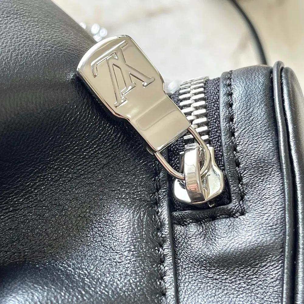- this functional design closes with an archive Louis Vuitton buckle and leather drawstrings.