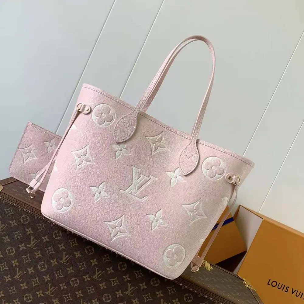 Louis Vuitton LV Women Neverfull MM Monogram Empreinte Leather-Pink M14210