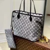 Specification: Louis Vuitton LV Women Neverfull MM Tote Gray Denim Textile Jacquard