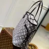 Louis Vuitton LV Women Neverfull MM Tote Gray Denim Textile Jacquard