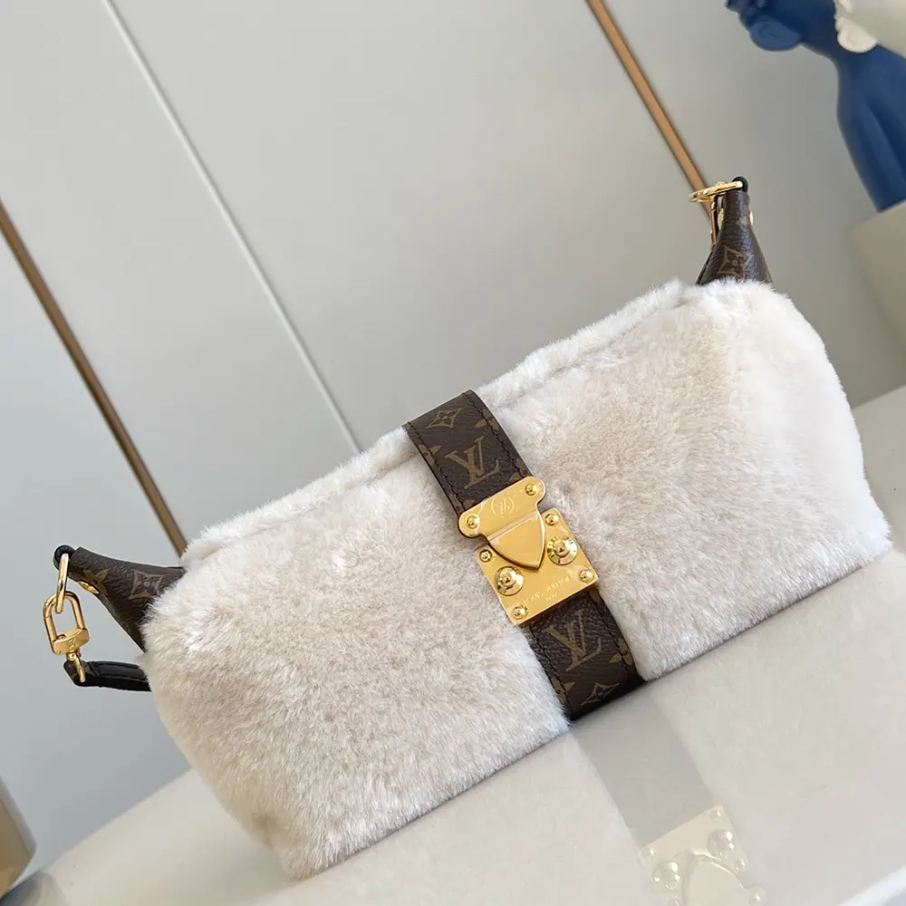 Specification: Louis Vuitton LV Women Pochette Mia with Cream shearling Coated-canvas