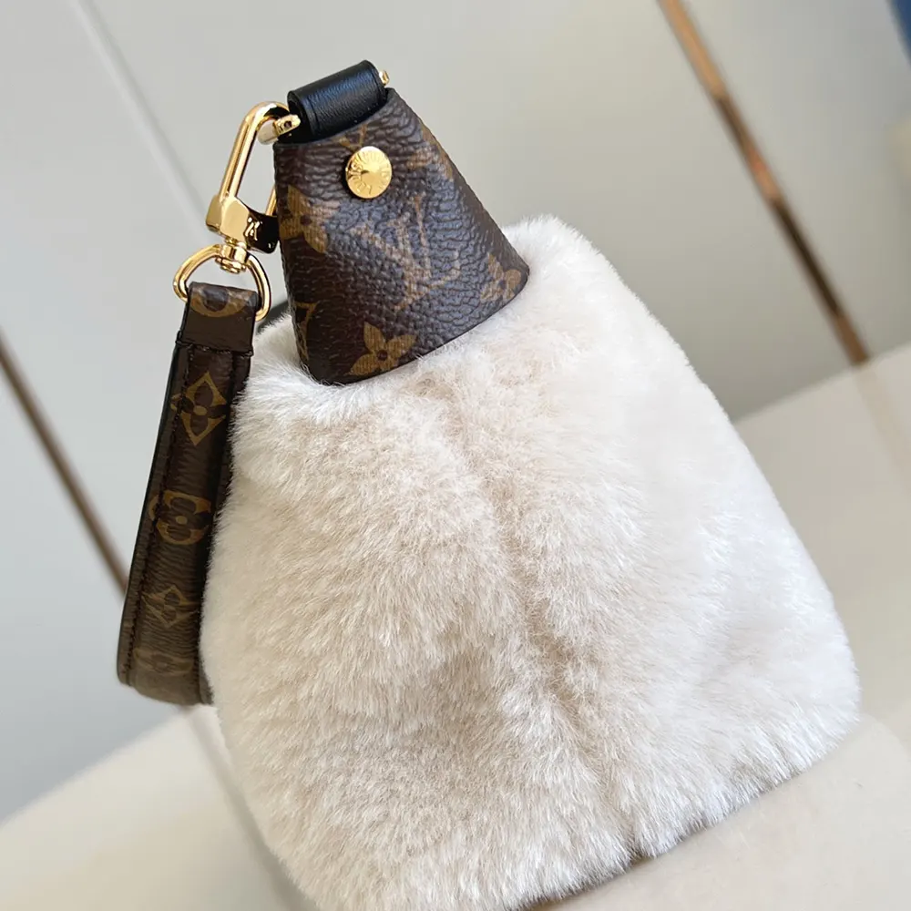 Louis Vuitton LV Women Pochette Mia with Cream shearling Coated-canvas