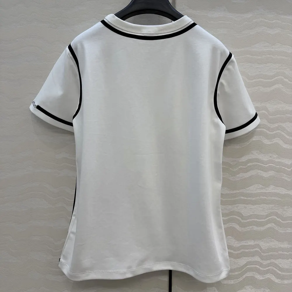 - Graphic lines outline the construction of this staple T-shirt for a statement trompe l’oeil look inspired by the Pop Art movement.