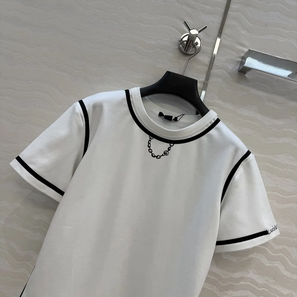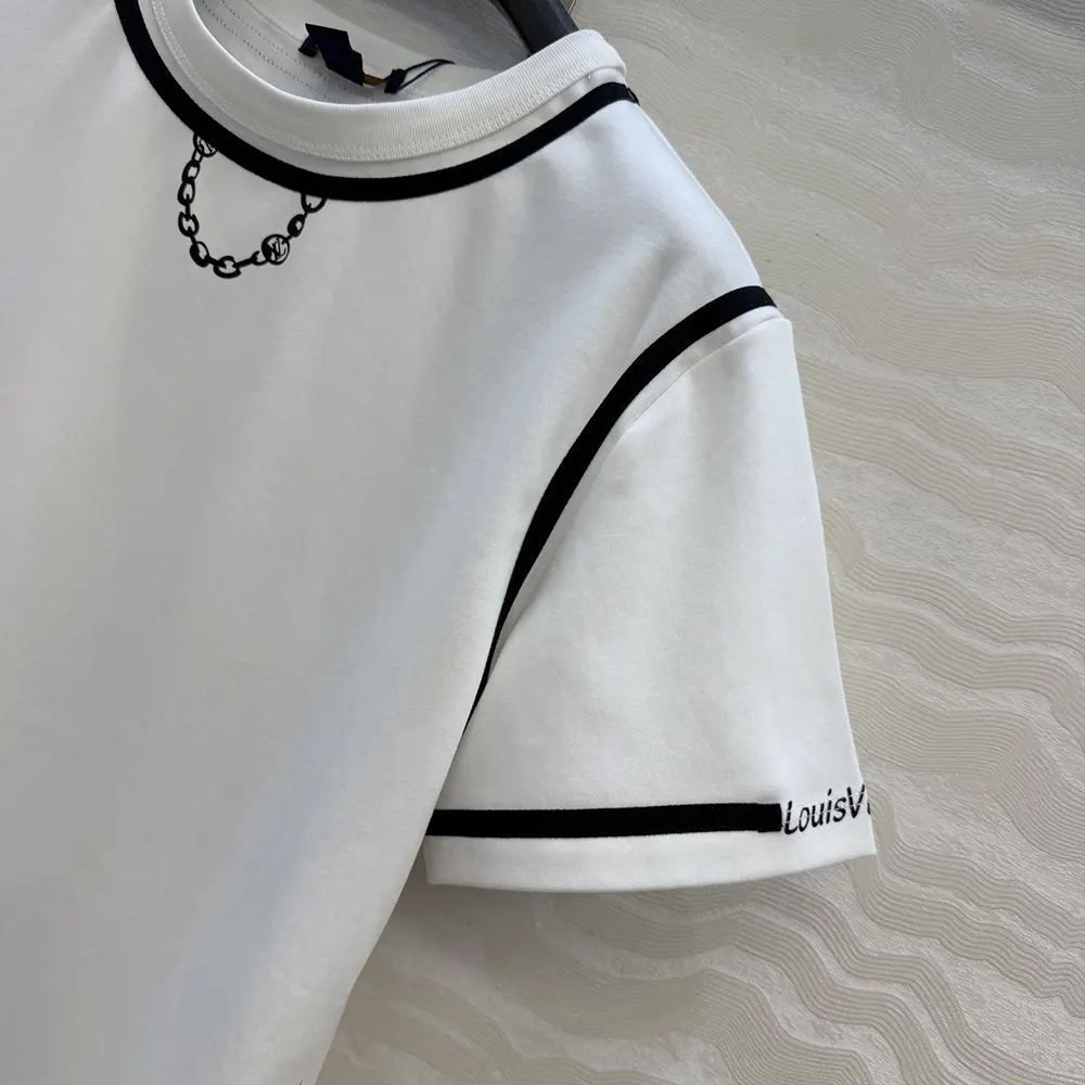 - The print includes a playful LV chain detail at the neckline and a Louis Vuitton signature on the left sleeve.