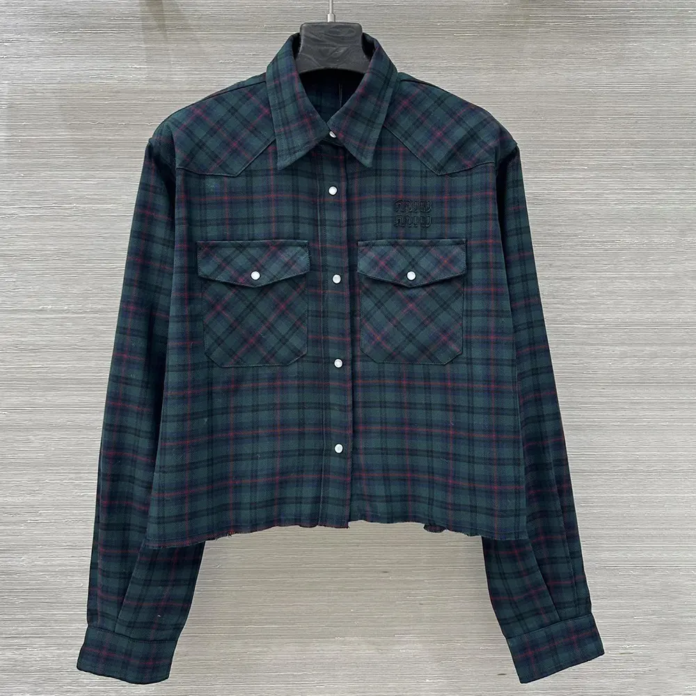 Specification: Miu Miu Women Plaid Shirt with Lettering Logo MK1970174R