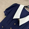 Miu Miu Women Pleated Marocain Midi-dress with Contrasting Collar