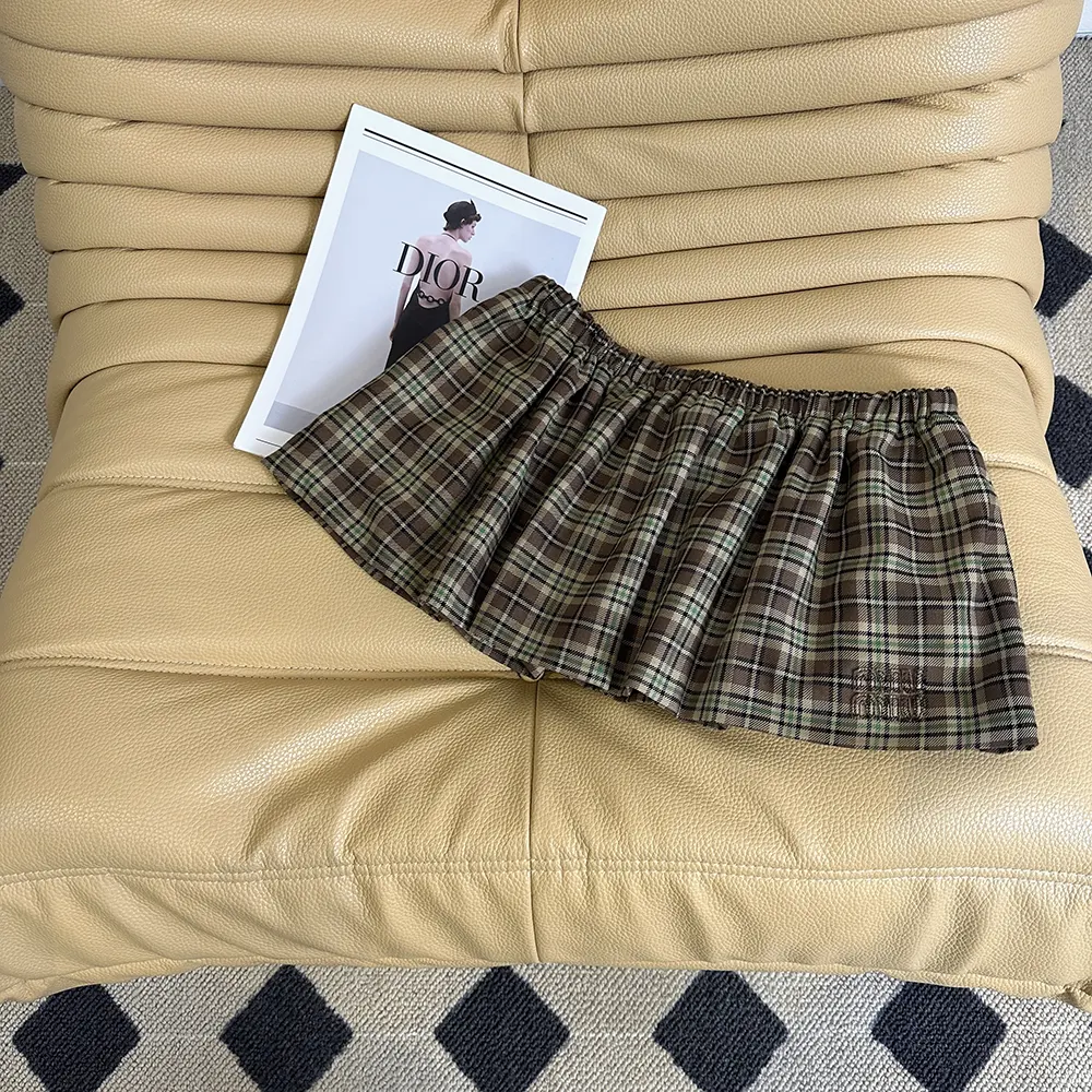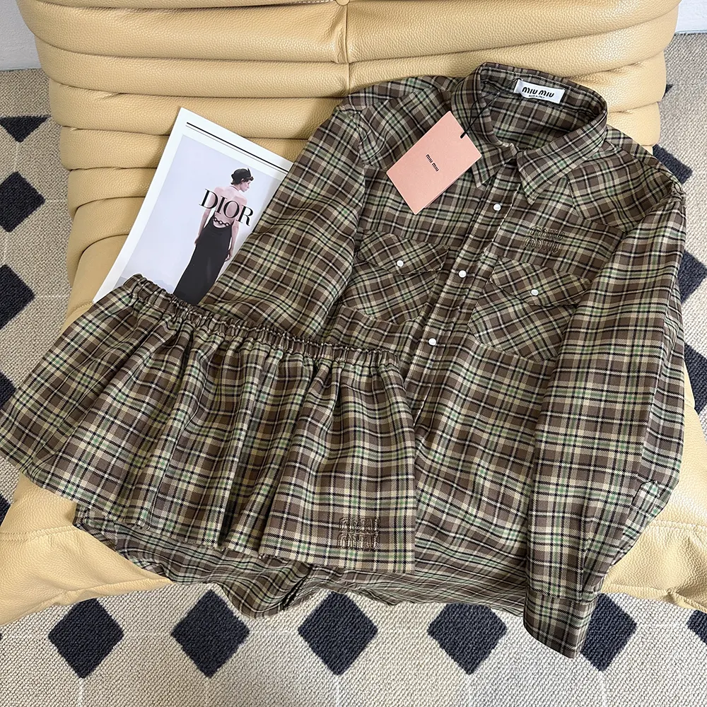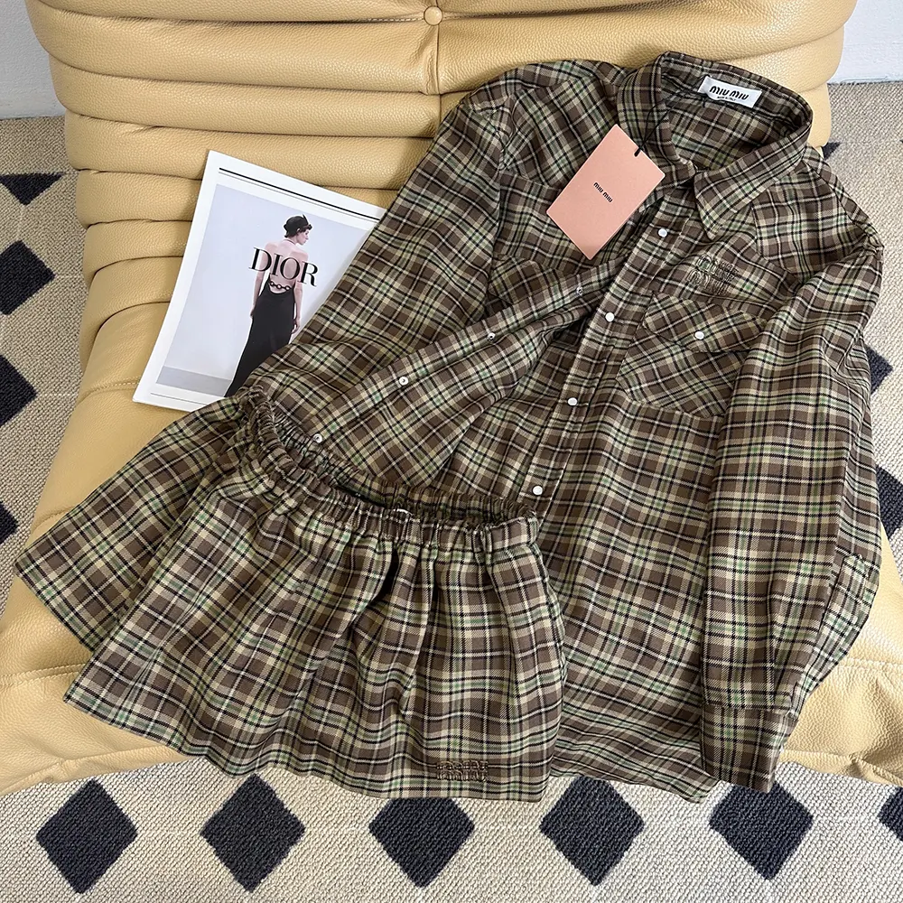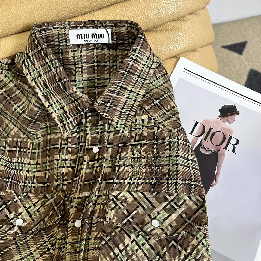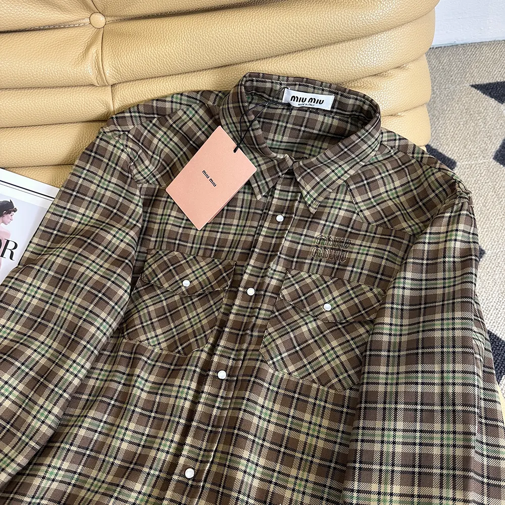 Miu Miu Women Wool Tartan Shirt Embroidered Logo MK1906
