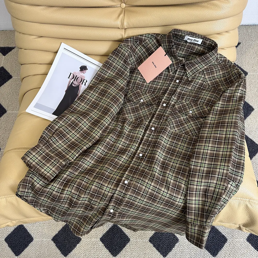 Specification: Miu Miu Women Wool Tartan Shirt Embroidered Logo MK1906