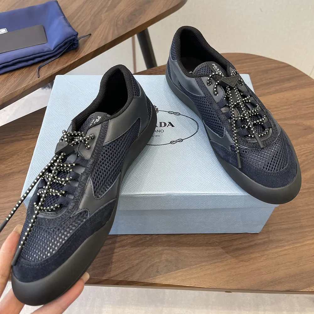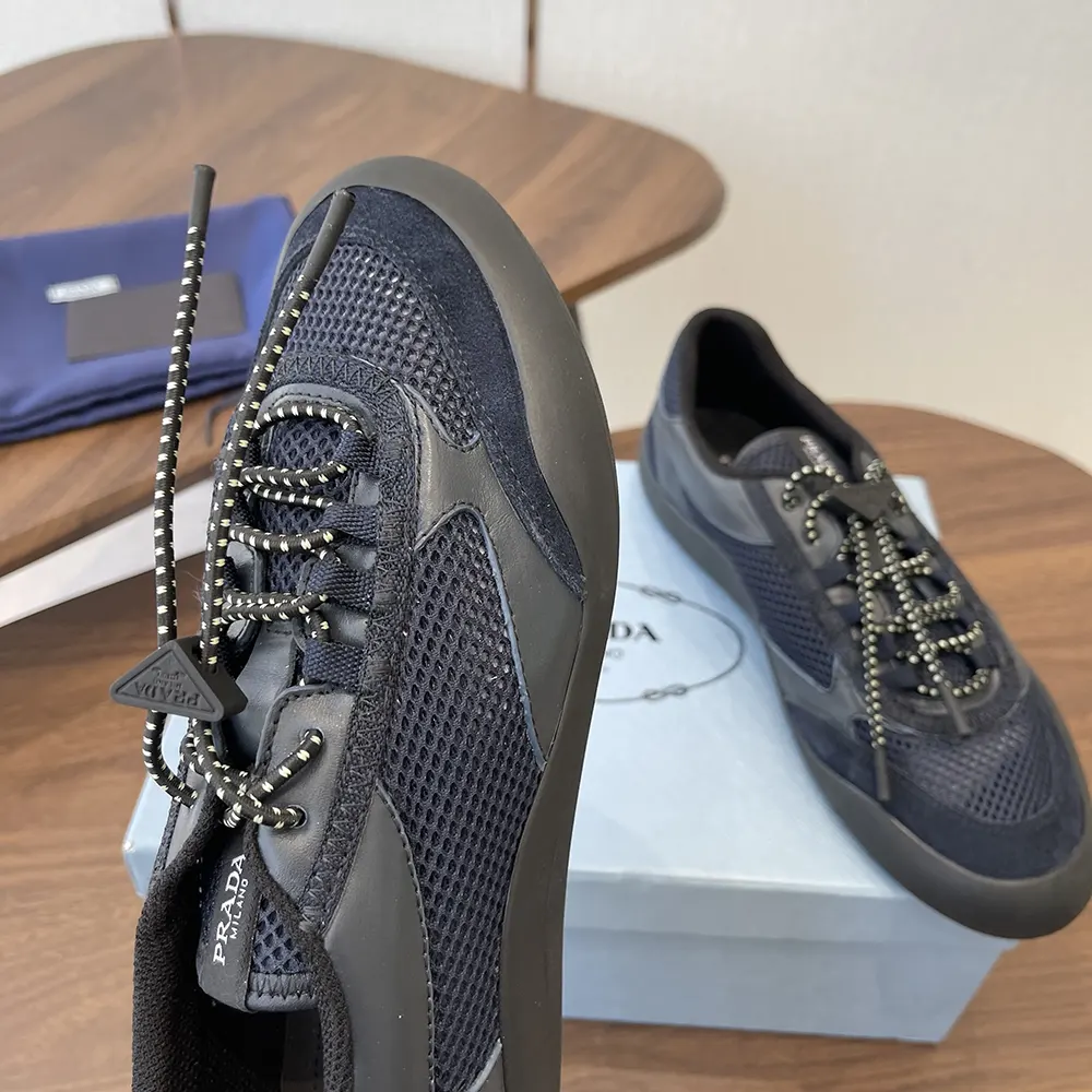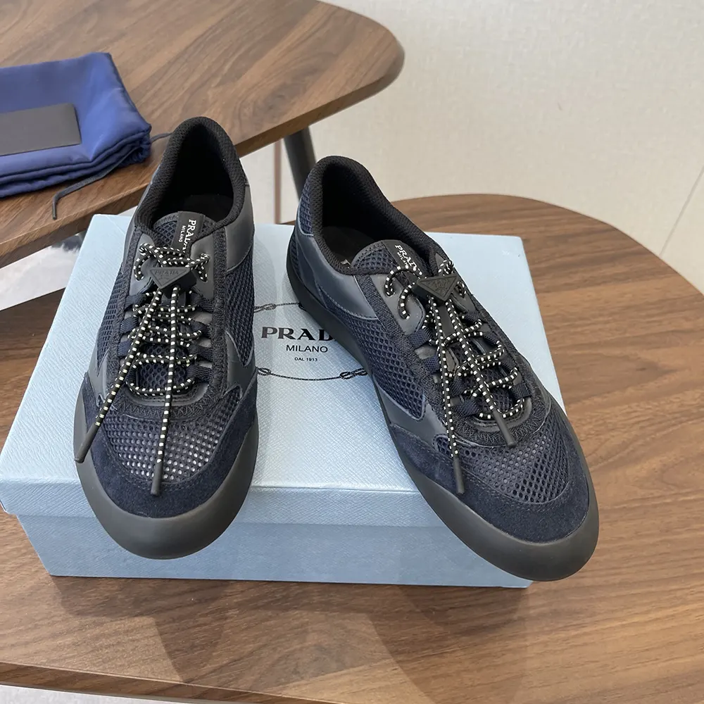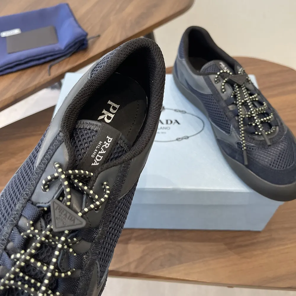 Prada Unisex Speedrock Leather And Mesh Fabric Sneakers-Black 2EE468