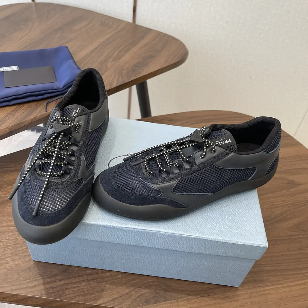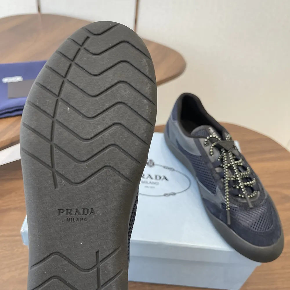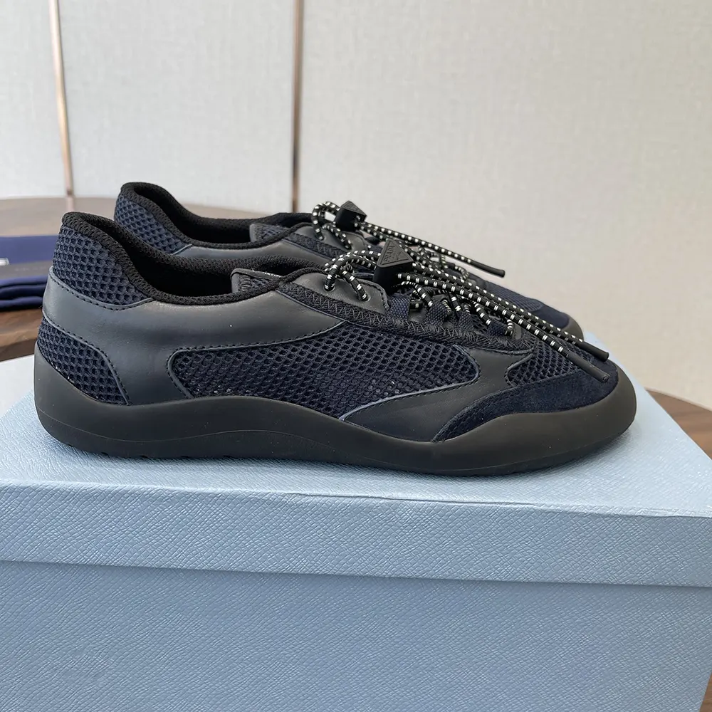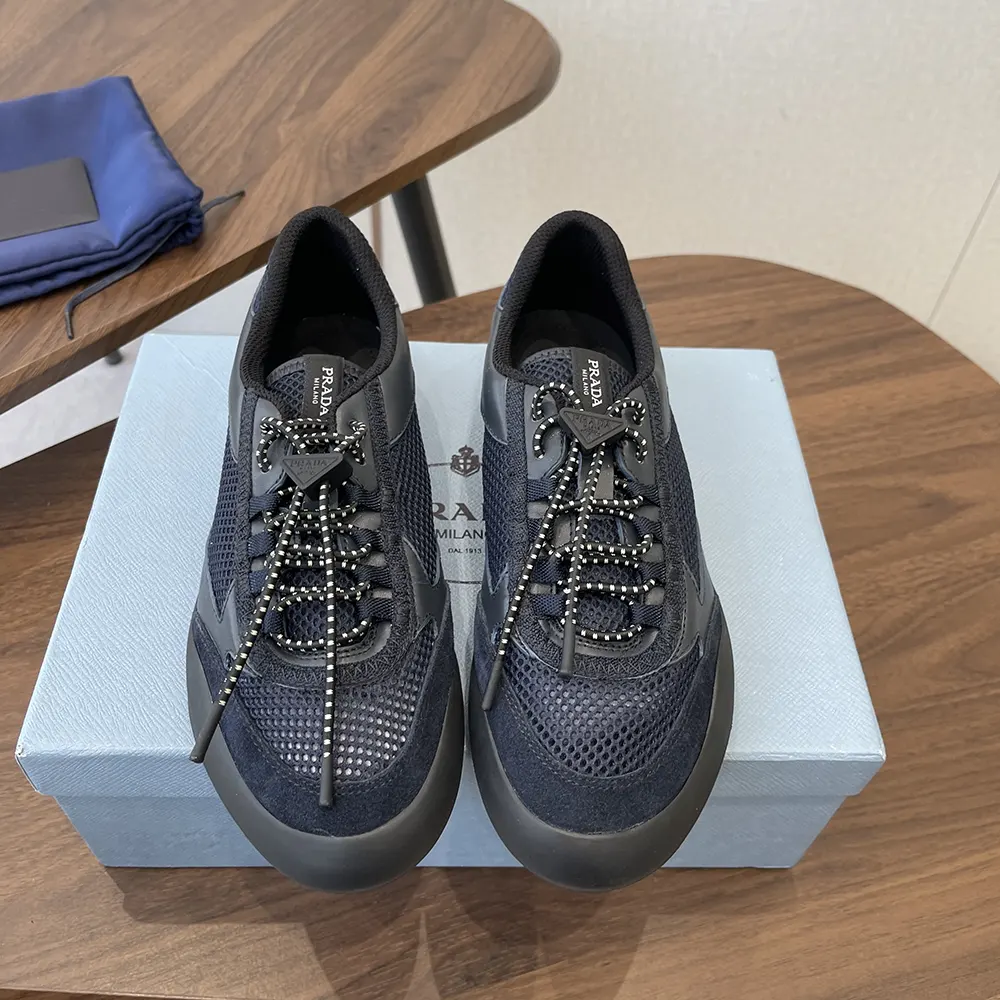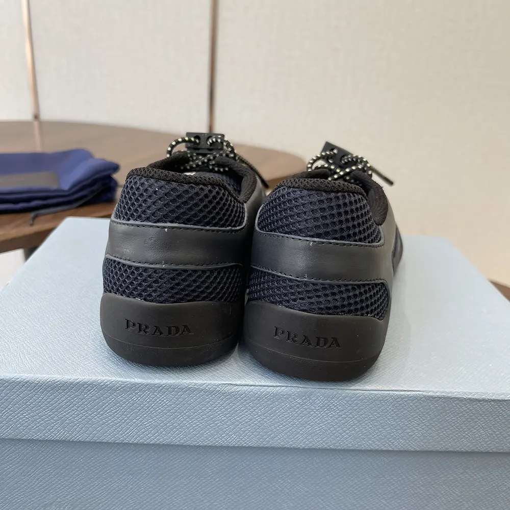 Prada Unisex Speedrock Leather And Mesh Fabric Sneakers-Black 2EE468