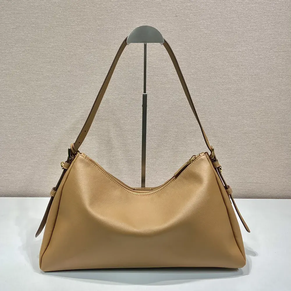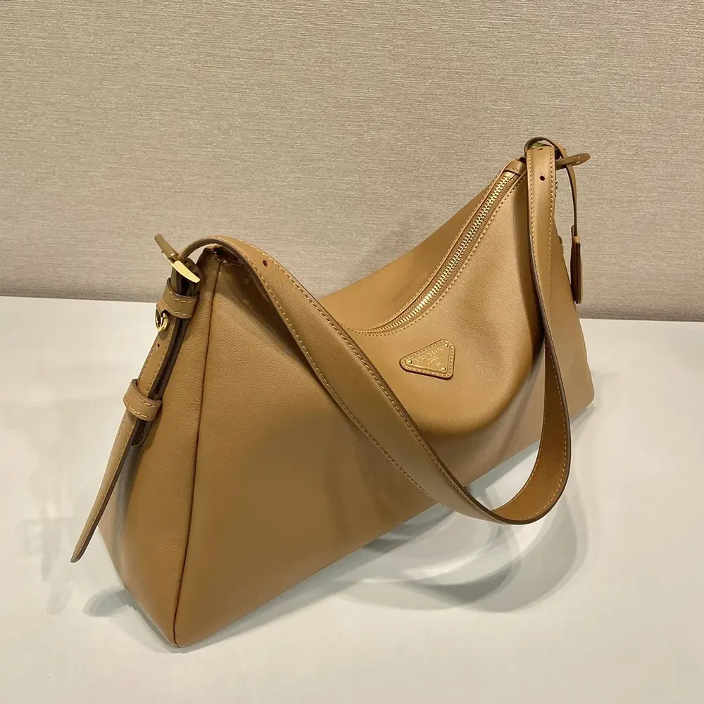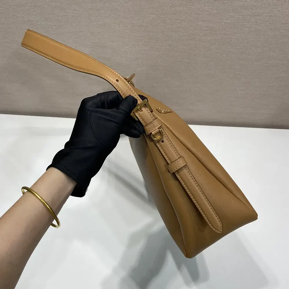 Prada Women Aimée Large Leather Shoulder Bag-Brown 1BC228