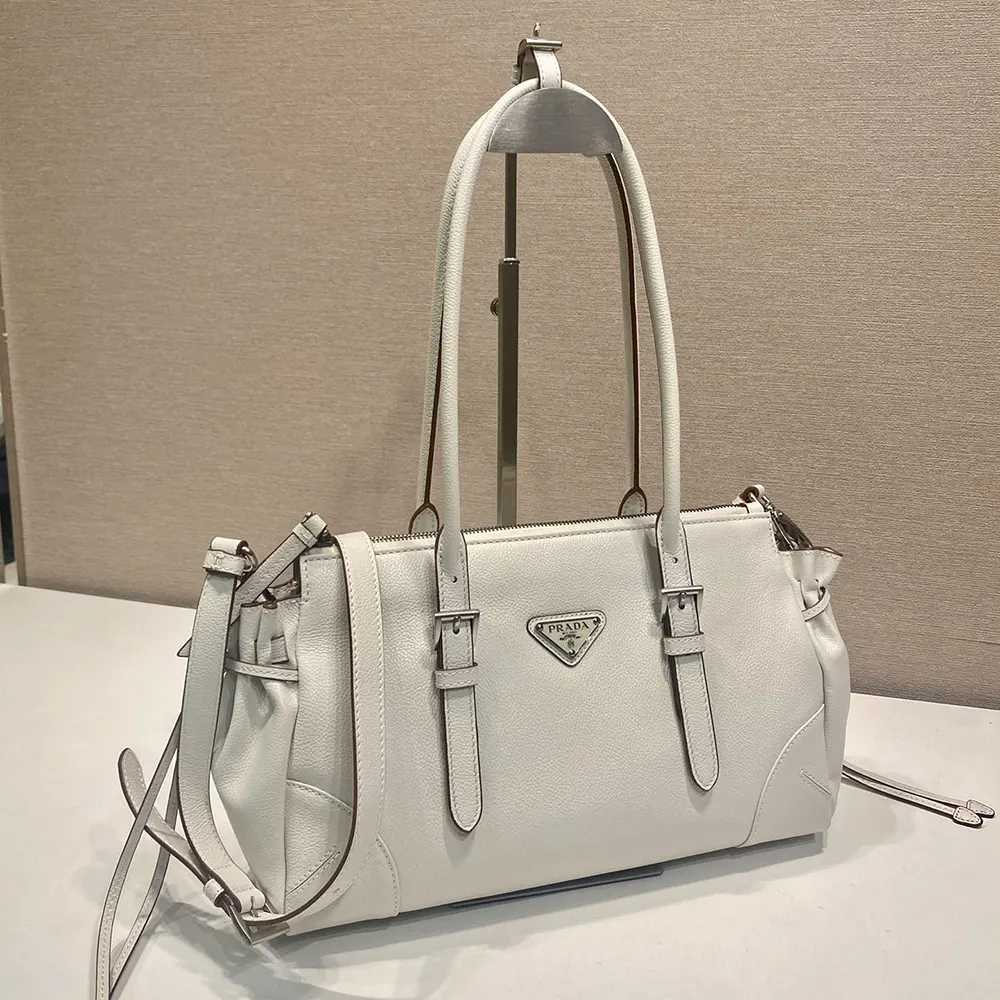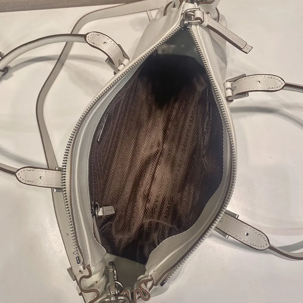 Specification: Prada Women Bonnie Medium Antiqued Leather Tote Bag-White 1BG6282HF2