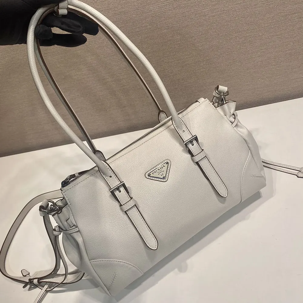 Prada Women Bonnie Medium Antiqued Leather Tote Bag-White 1BG6282HF2