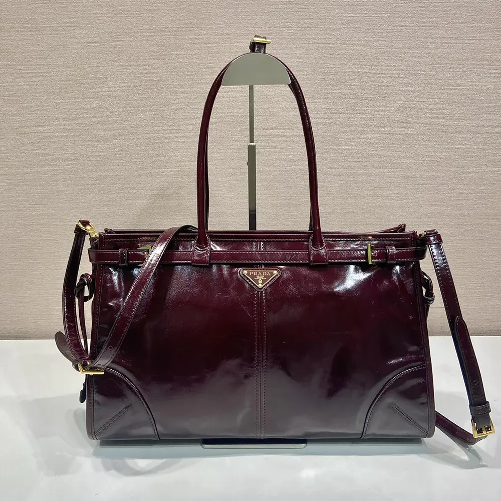 Specification: Prada Women Bonnie Medium Leather Handbag-Maroon 1BA4332CYR