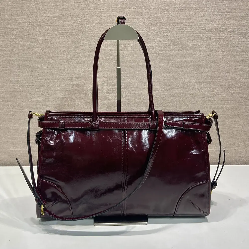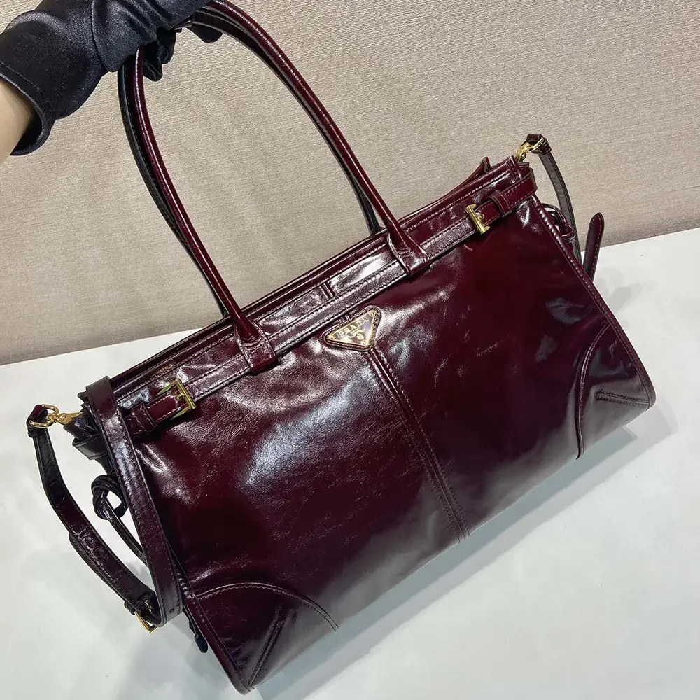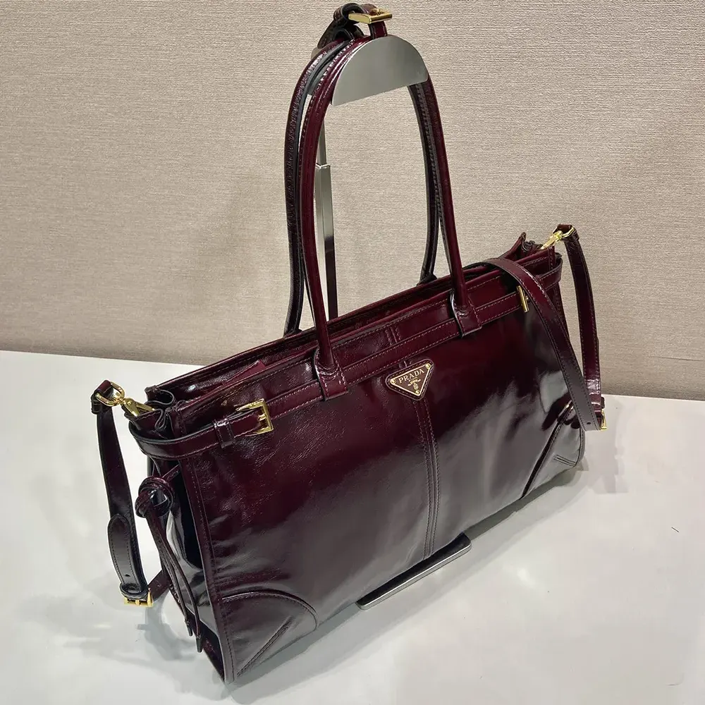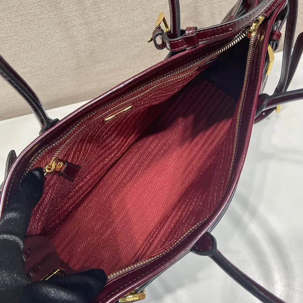 Prada Women Bonnie Medium Leather Handbag-Maroon 1BA4332CYR