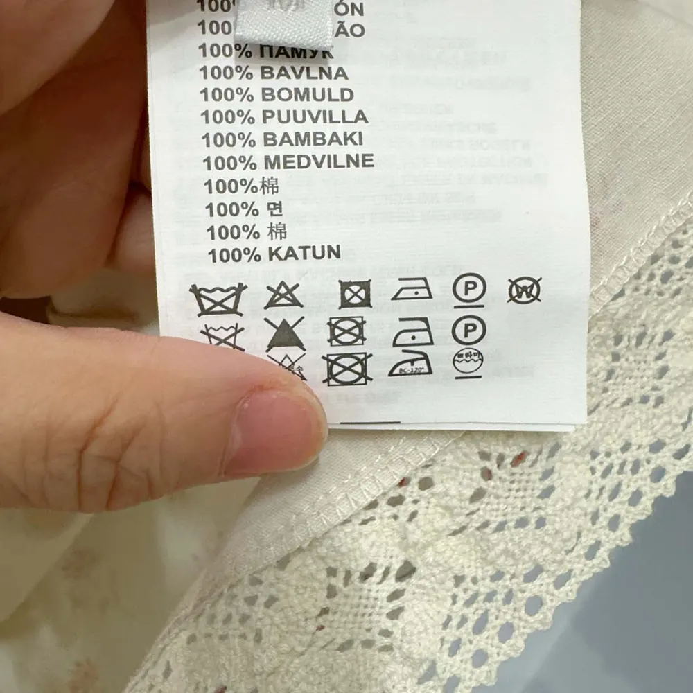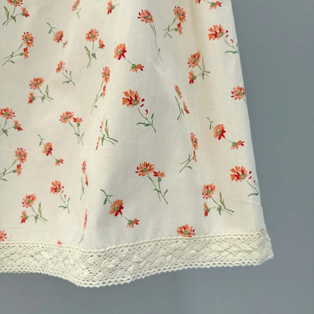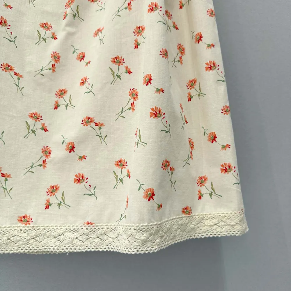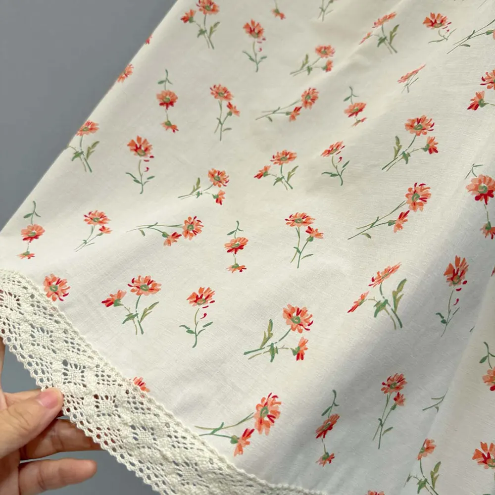 - A delicate floral print embellishes the airy design completed with macramé lace trim.