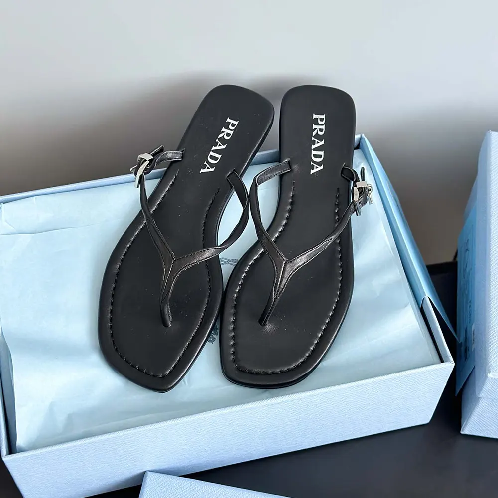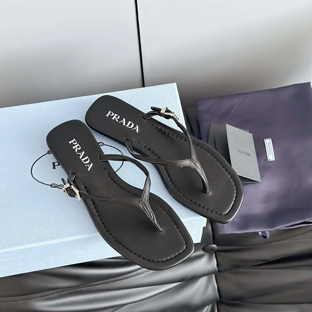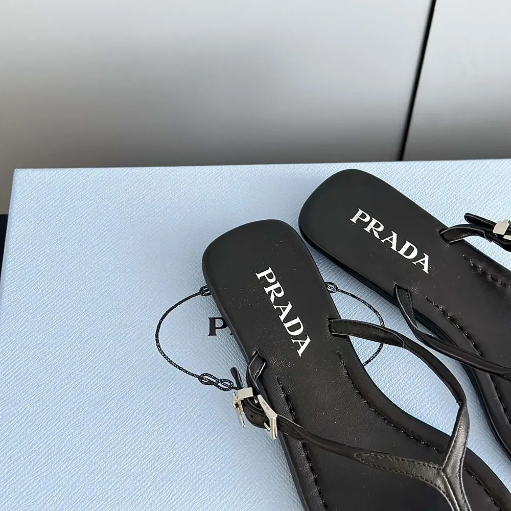 Prada Women Leather Thong Sandals-Black 1Y503N