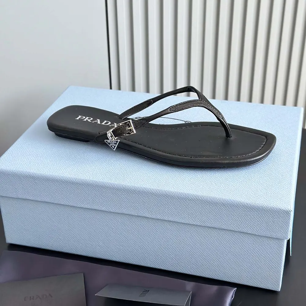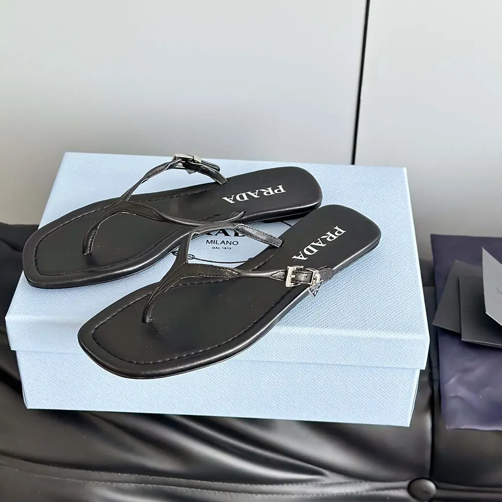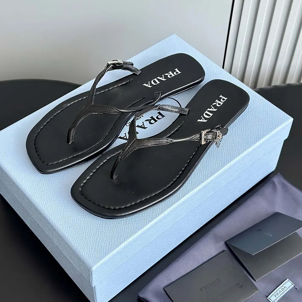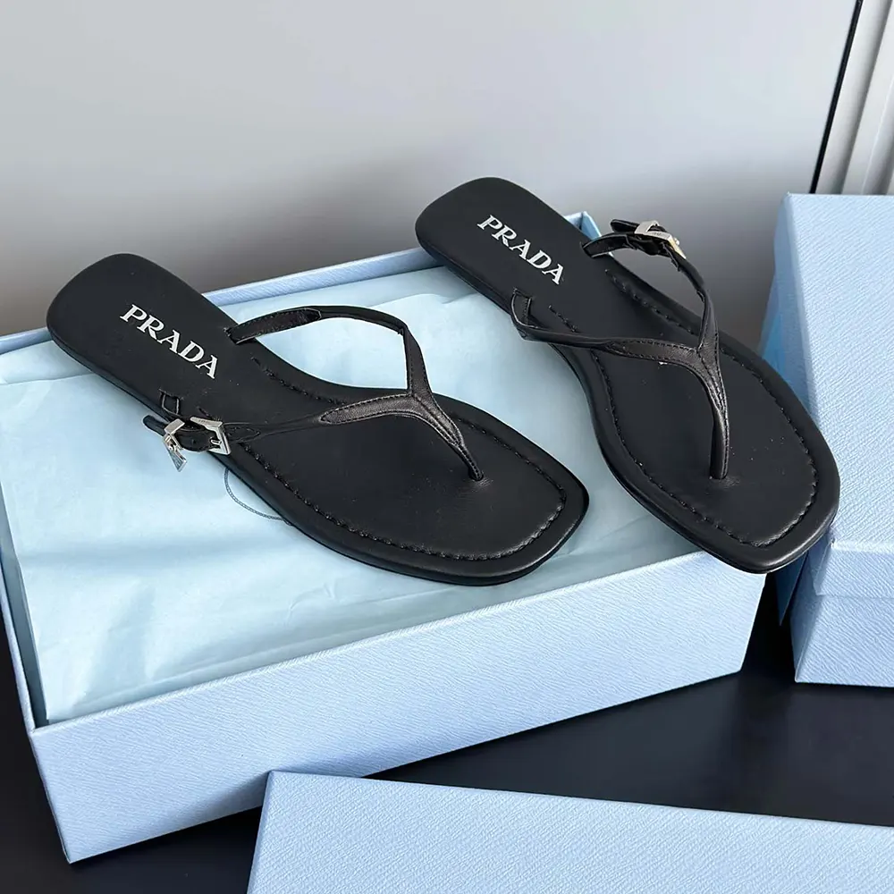 Prada Women Leather Thong Sandals-Black 1Y503N