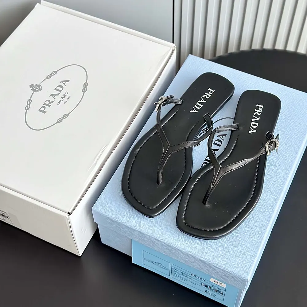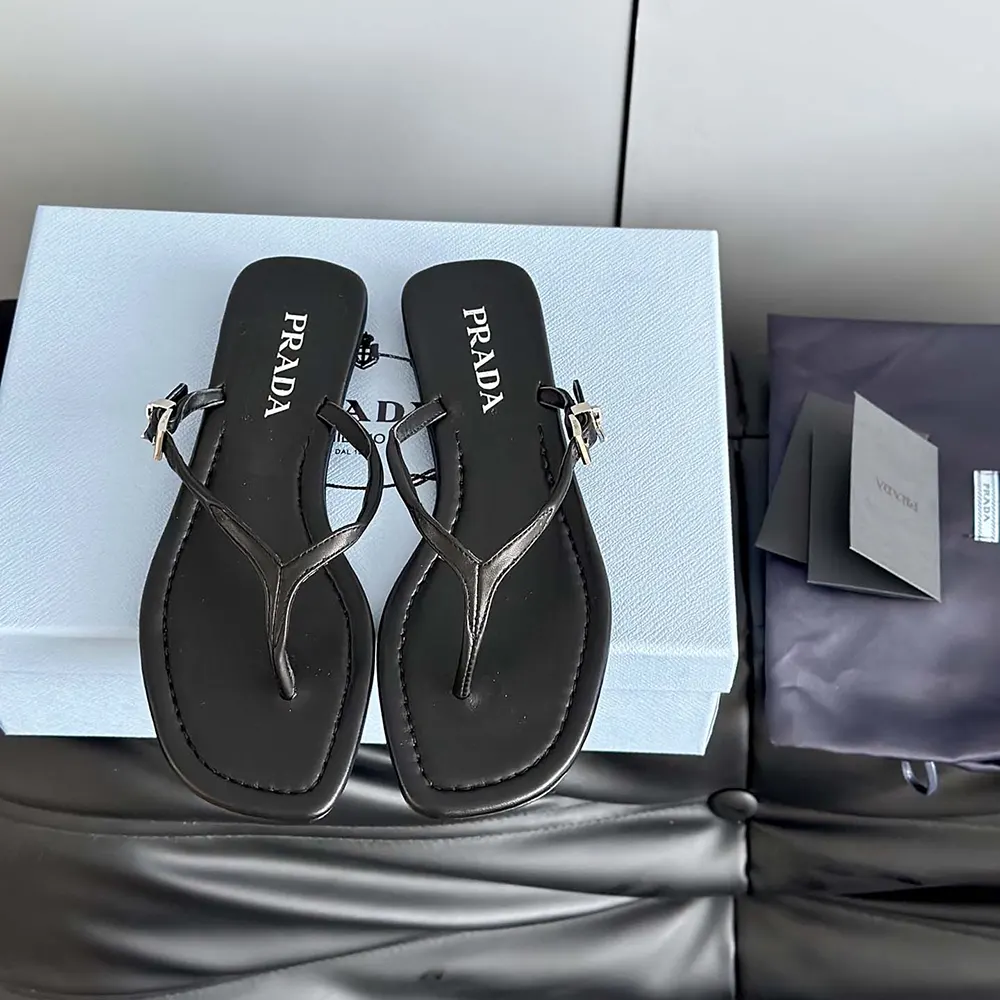 Specification: Prada Women Leather Thong Sandals-Black 1Y503N