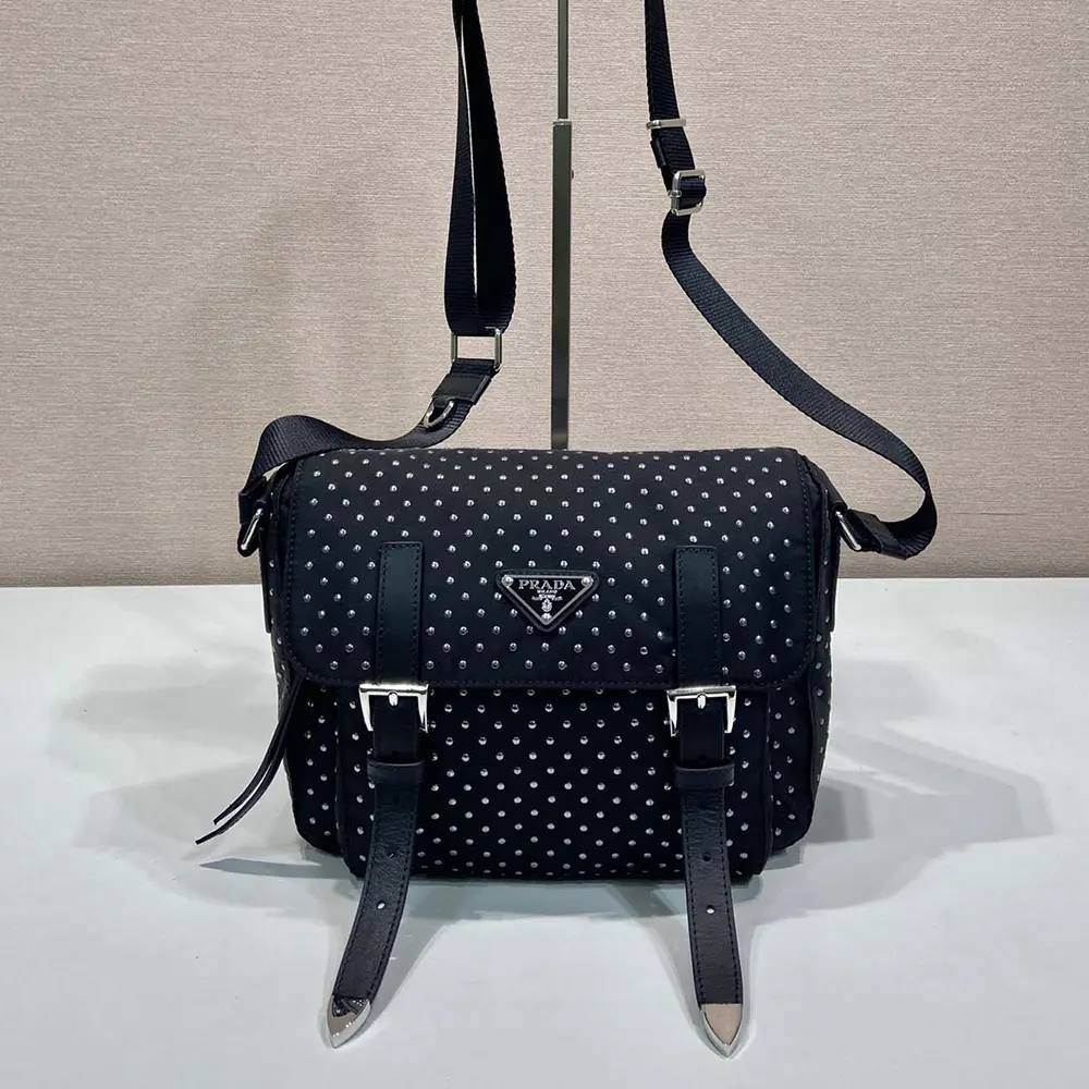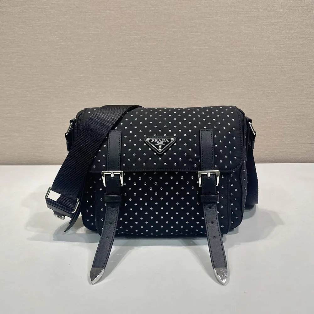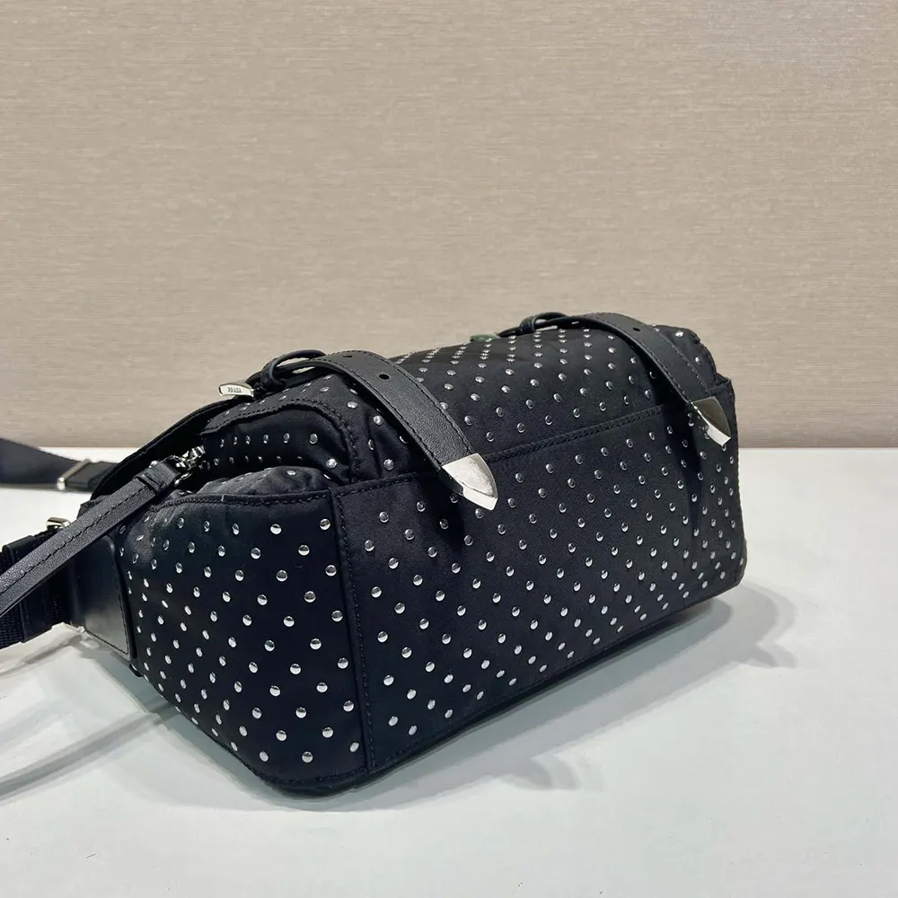 Prada Women Re-Nylon Shoulder Bag with Studs 1BD382
