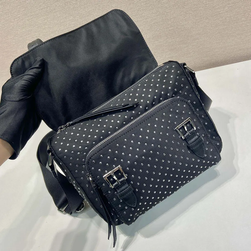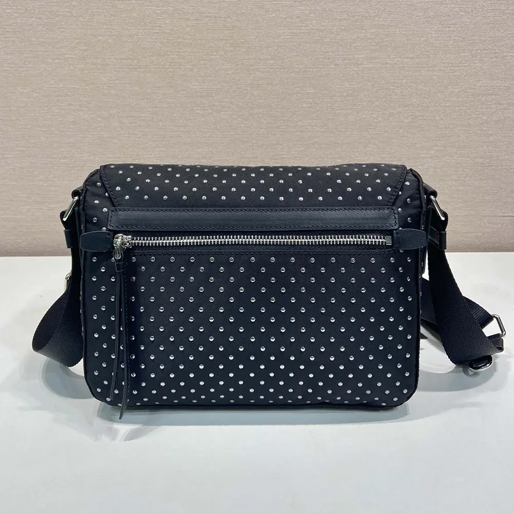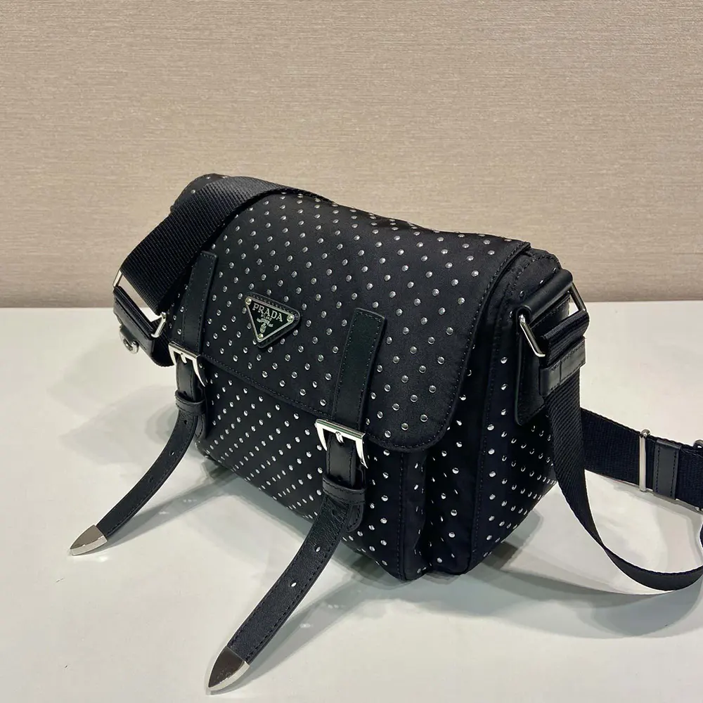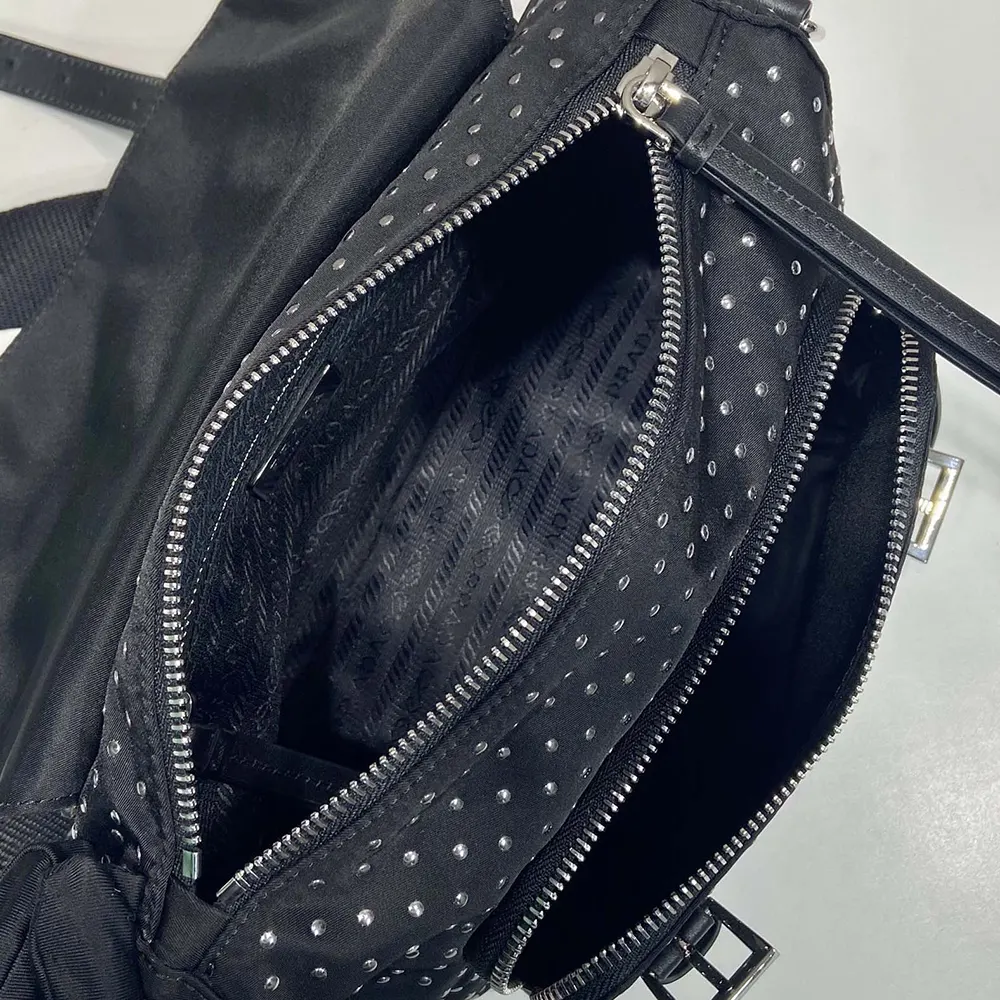 Prada Women Re-Nylon Shoulder Bag with Studs 1BD382