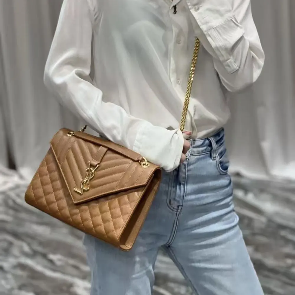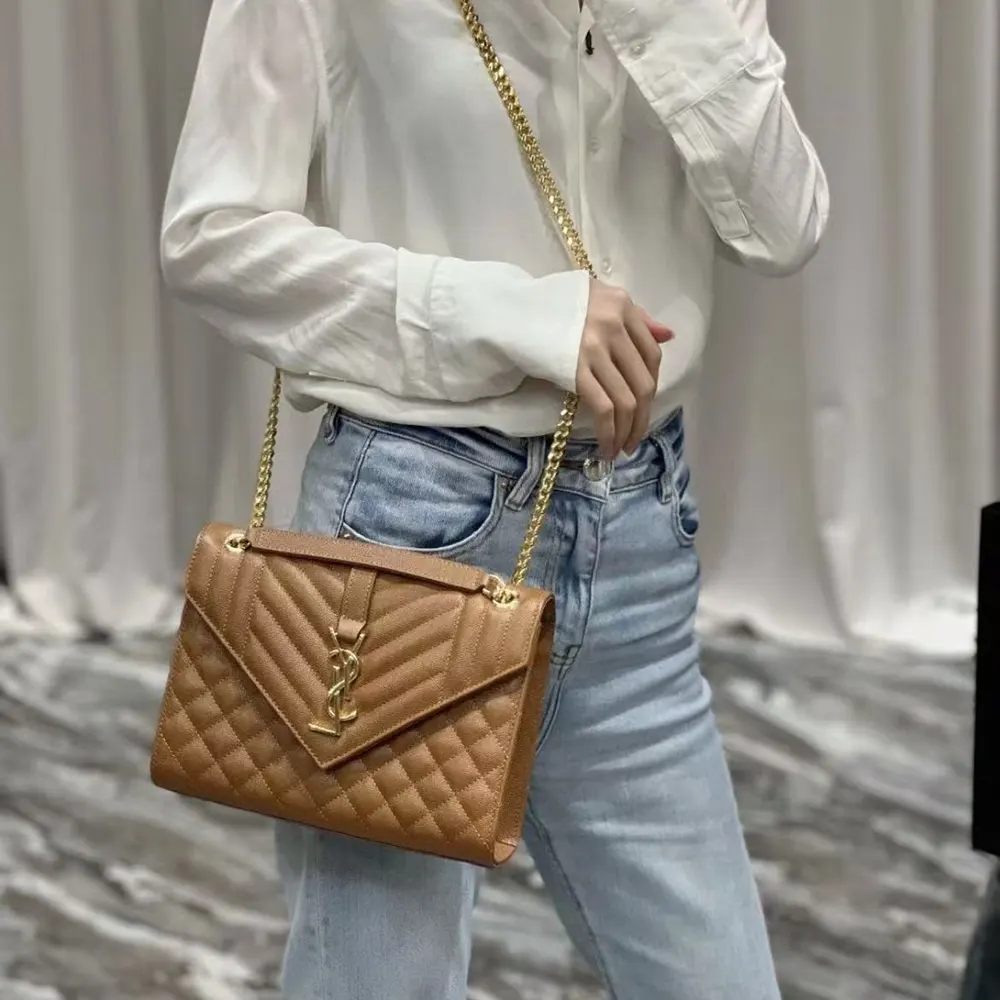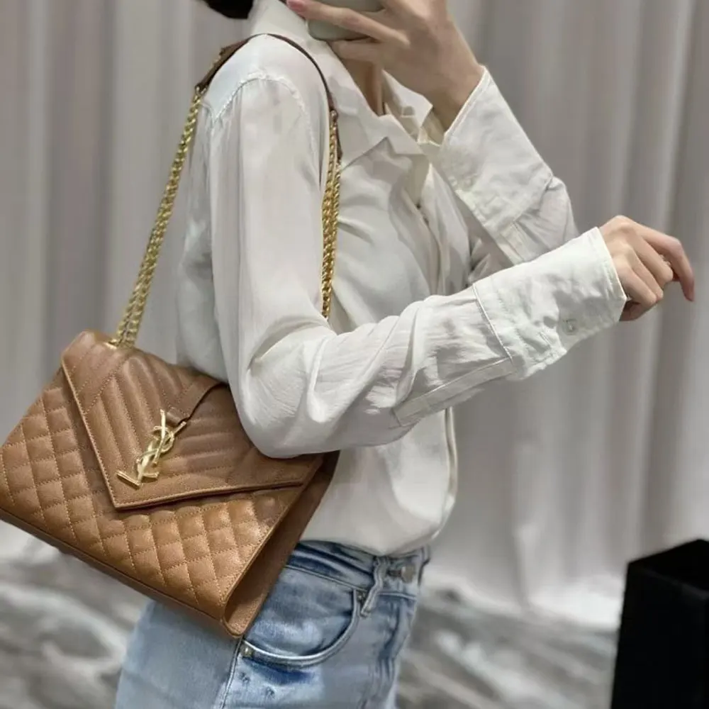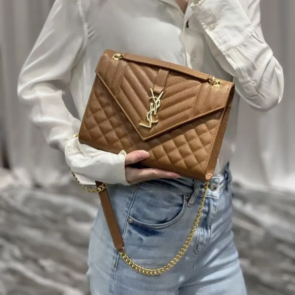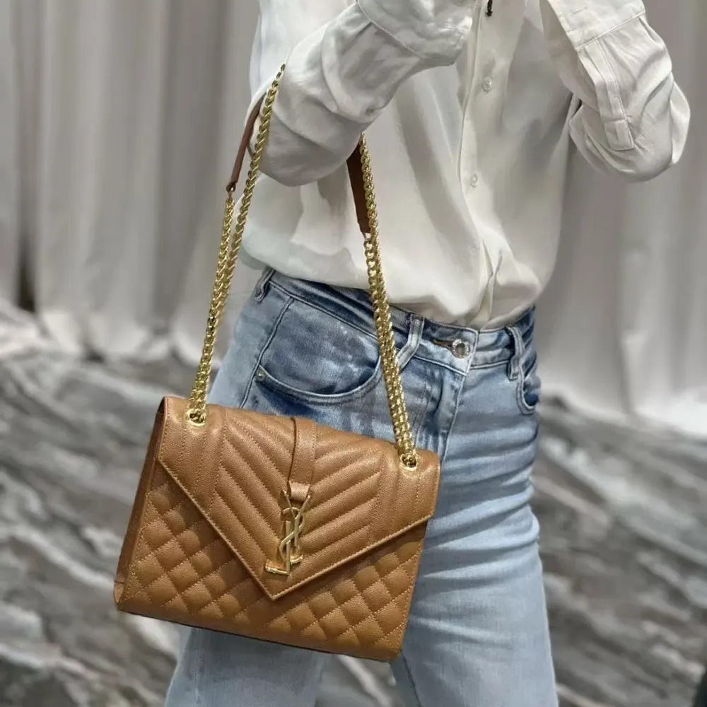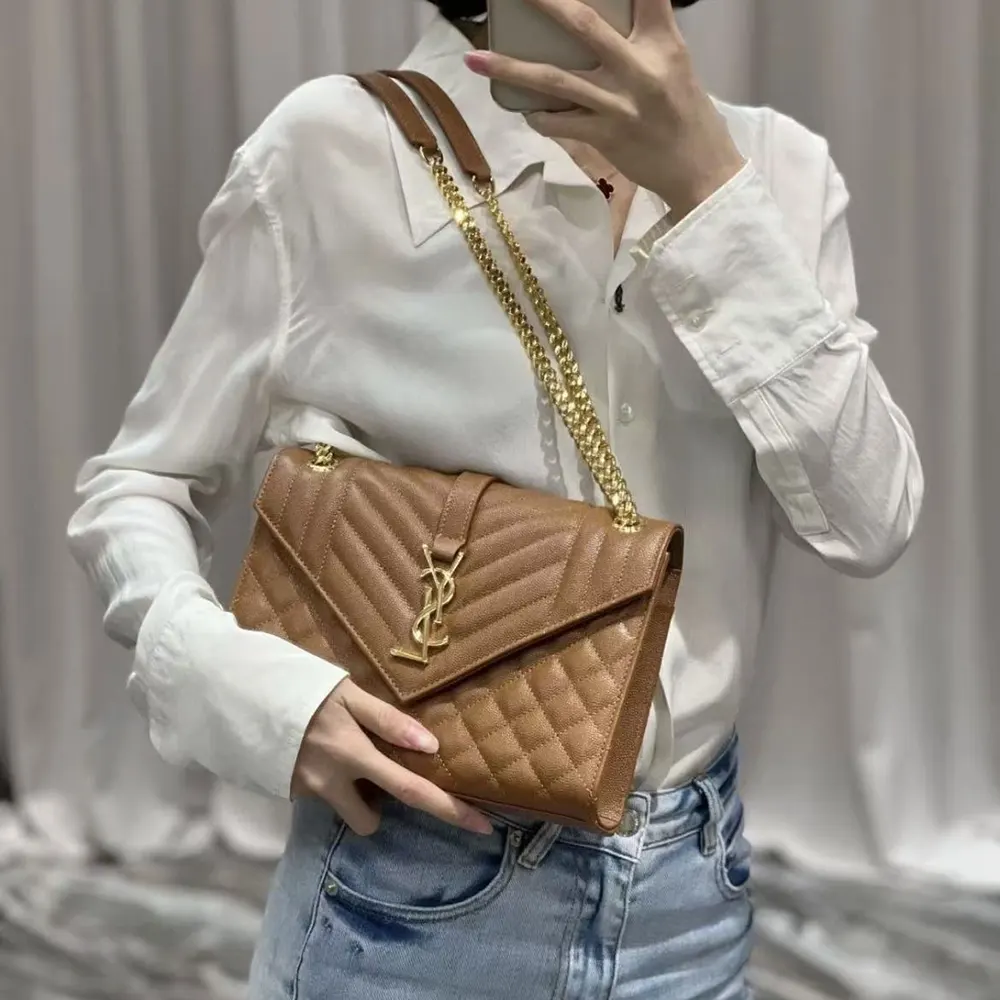 Specification: Saint Laurent YSL Women Envelope Medium in Matelasse Lambskin-Brown